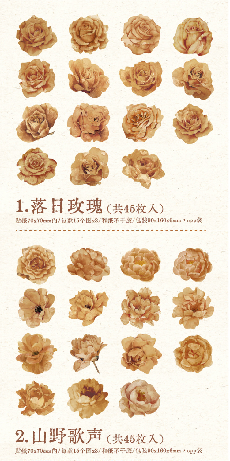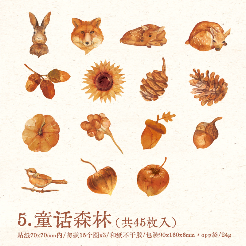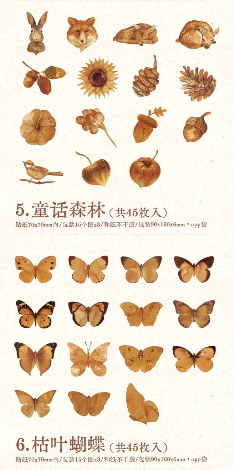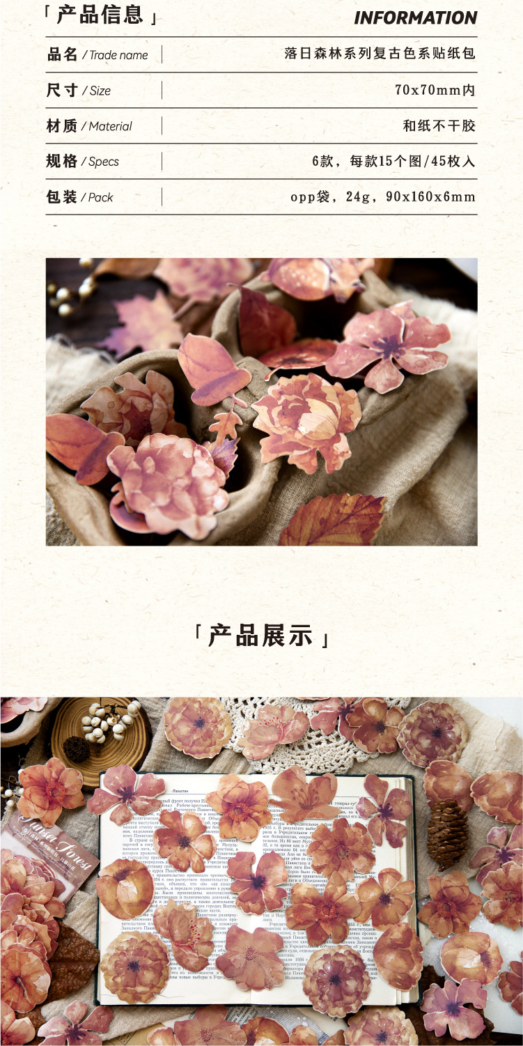 연지 스티커 가방 일몰 숲 시리즈 복고풍 꽃 나비 기본 손 계정 기본 장식 재료 스티커스토어 가기