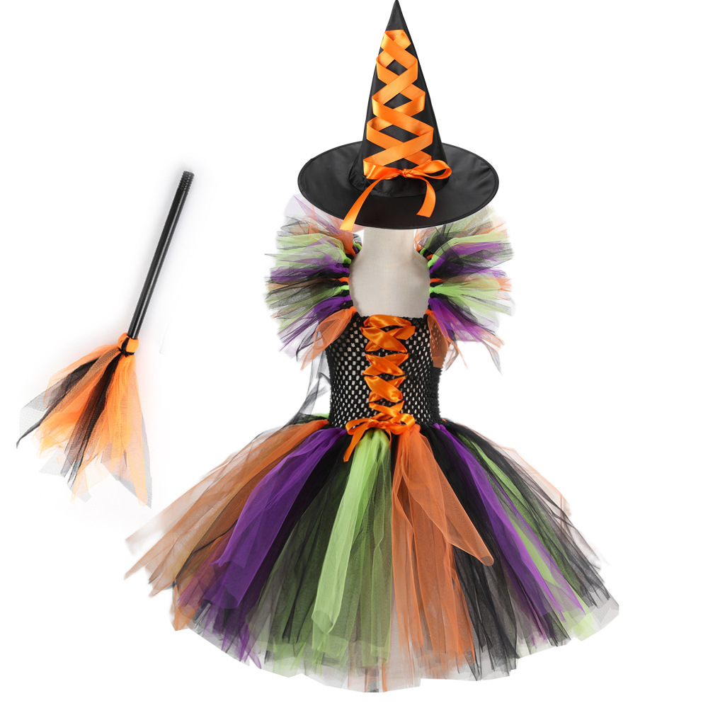 2025 신형 마녀 모자 파티 드레스 할로윈 코스프레 공연 드레스 의상 마녀 소녀 세트