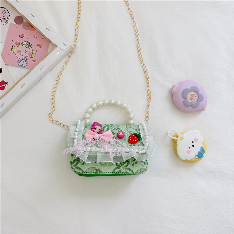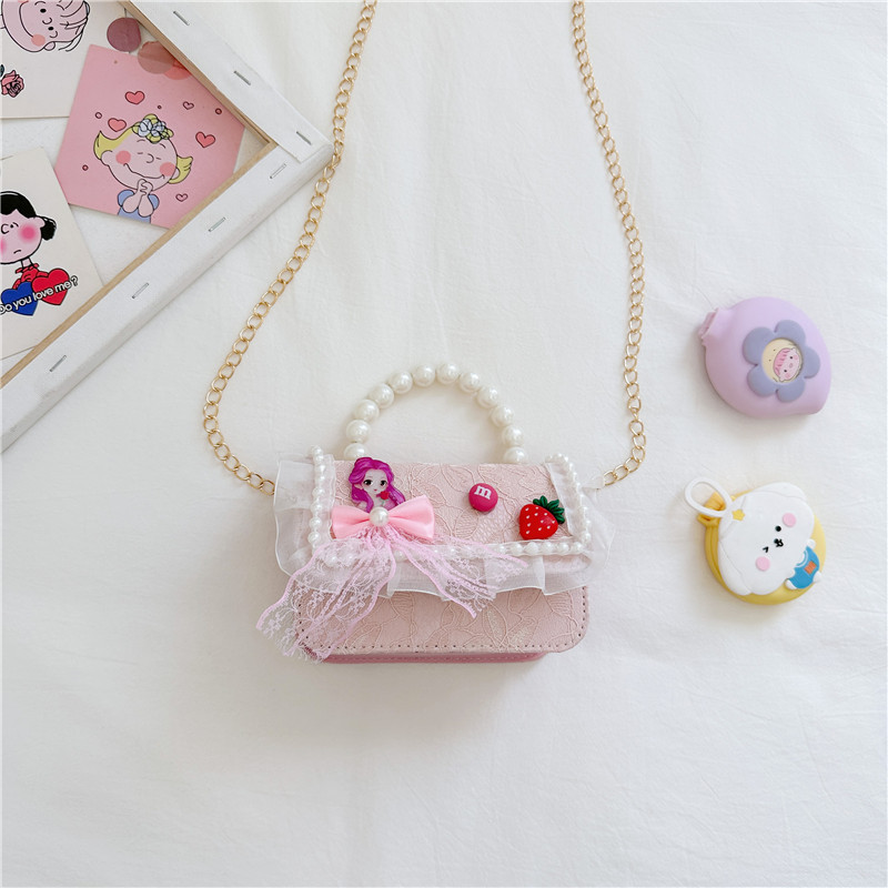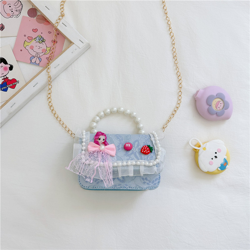 진주 어린이 핸드백 2022 새로운 개성 어린이 아이샤 크로스 바디 백 패션 공주 면 및 린넨 동전 지갑 가방