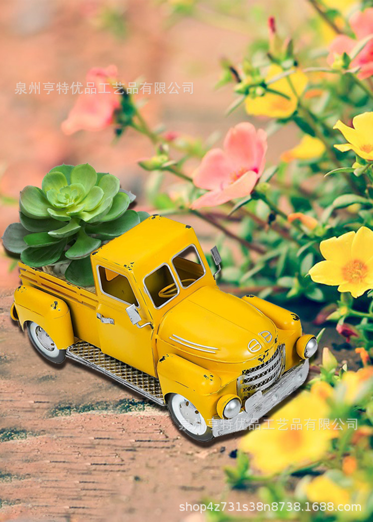 크리 에이 티브 철 복고풍 트럭 다육 녹색 식물 화분 컨테이너 안뜰 정원 실내 및 실외 홈 공예 장식품