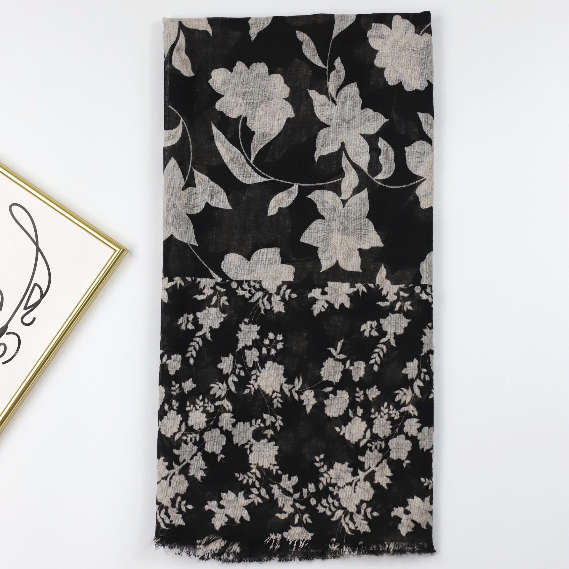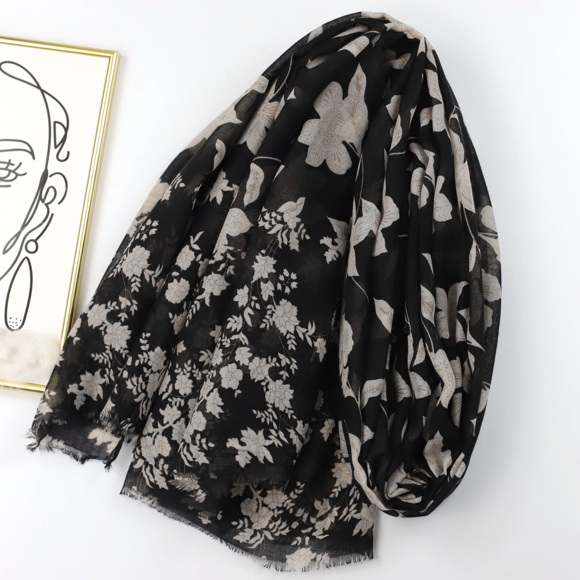 공장 판매 대외 무역 국경 간 간단한 우아한 간단한 검은 꽃 암호화 발리 원사 긴 스카프 여행 자외선 차단제 비치 스카프 실크 스카프