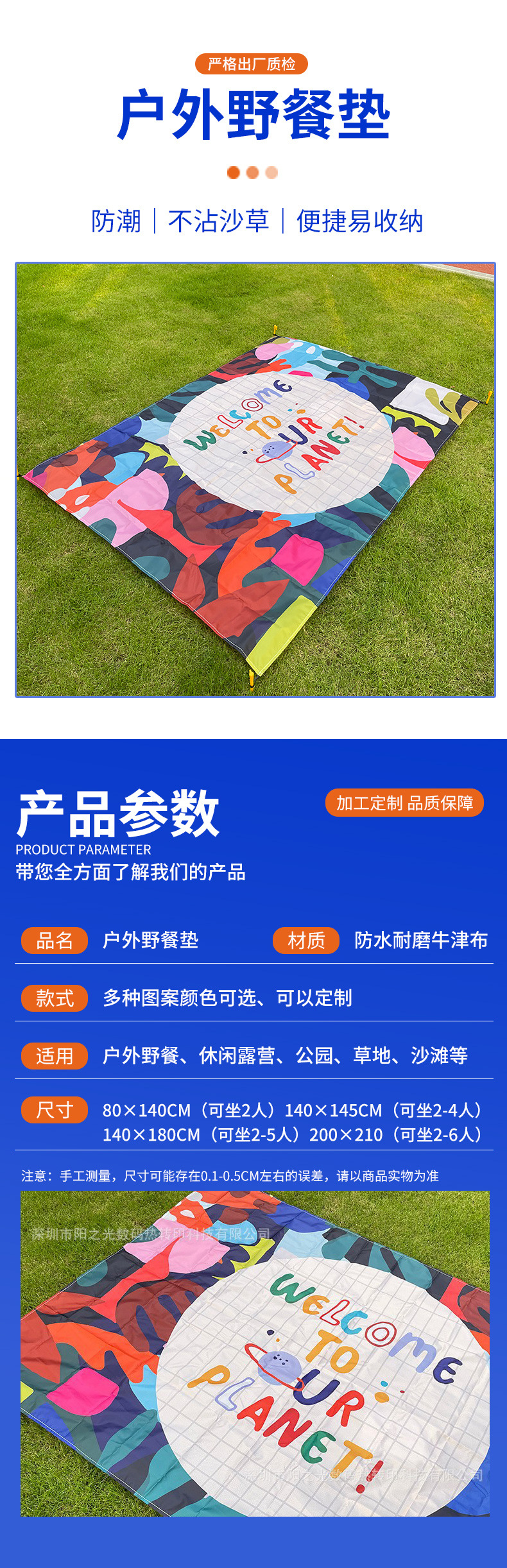 야외 피크닉 매트, 두꺼운 휴대용 비치 매트, 방수 및 방습 매트, 사진에 따른 디자인, 피크닉 천, 미끄럼 방지, 수납 가능