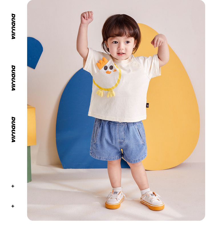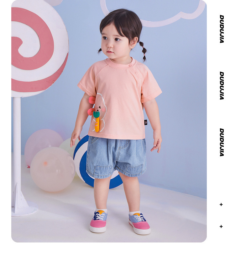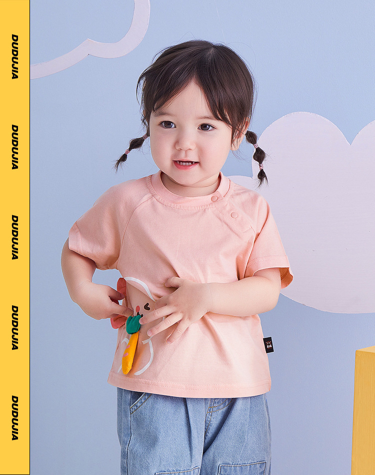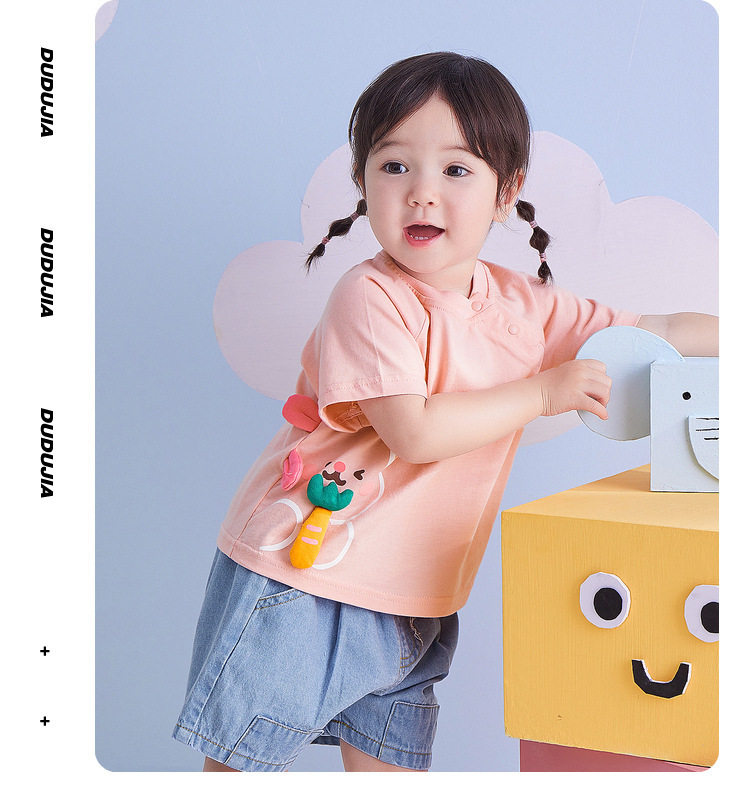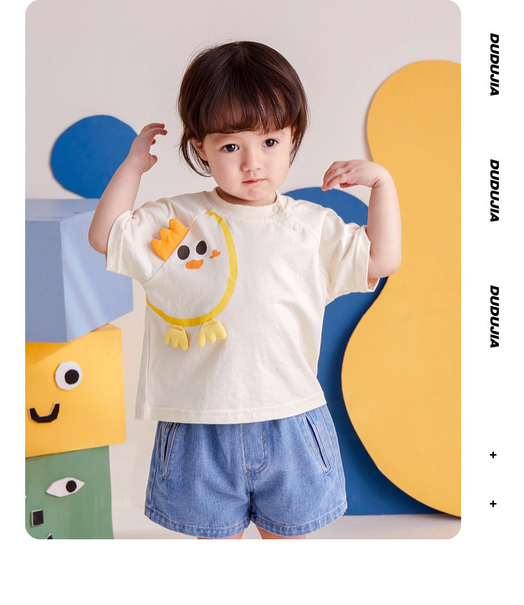 Dudu 아기 만화 반팔 티셔츠 여름 아기 반팔 소년 탑 소녀 옷 소녀 아동 의류 유행스토어 가기