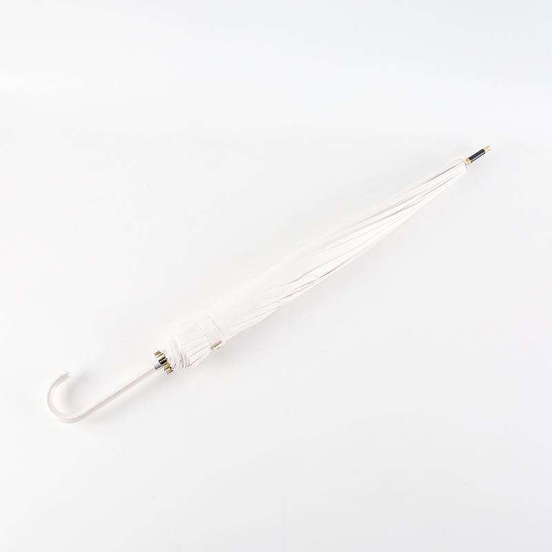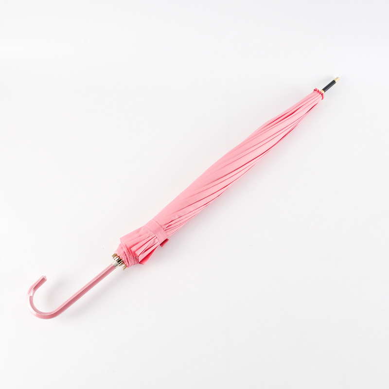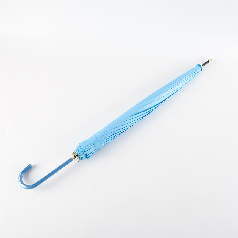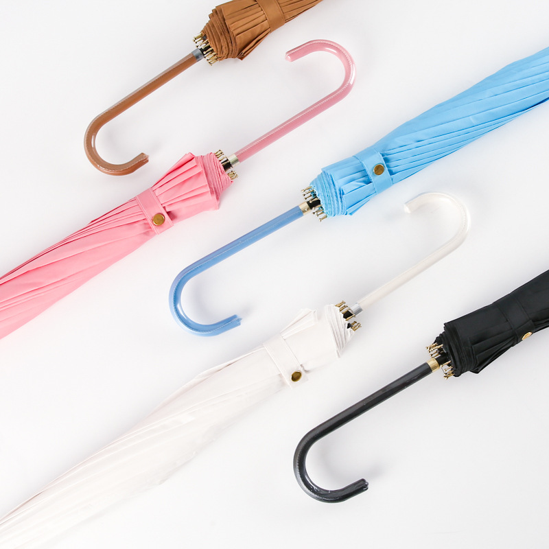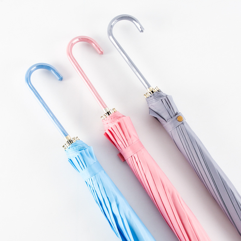 한국 16 뼈 피부 곡선 손잡이 소 신선한 단색 하이 컬러 값 자동 직선 손잡이 우산 인쇄 가능 로고 광고 우산 도매