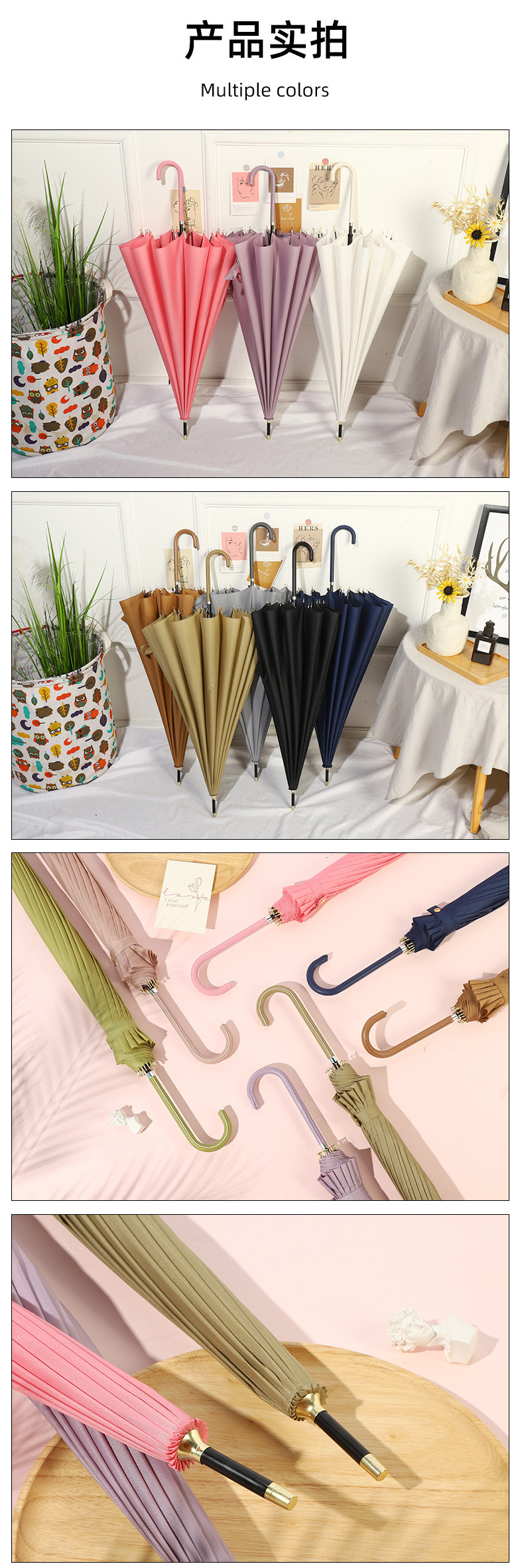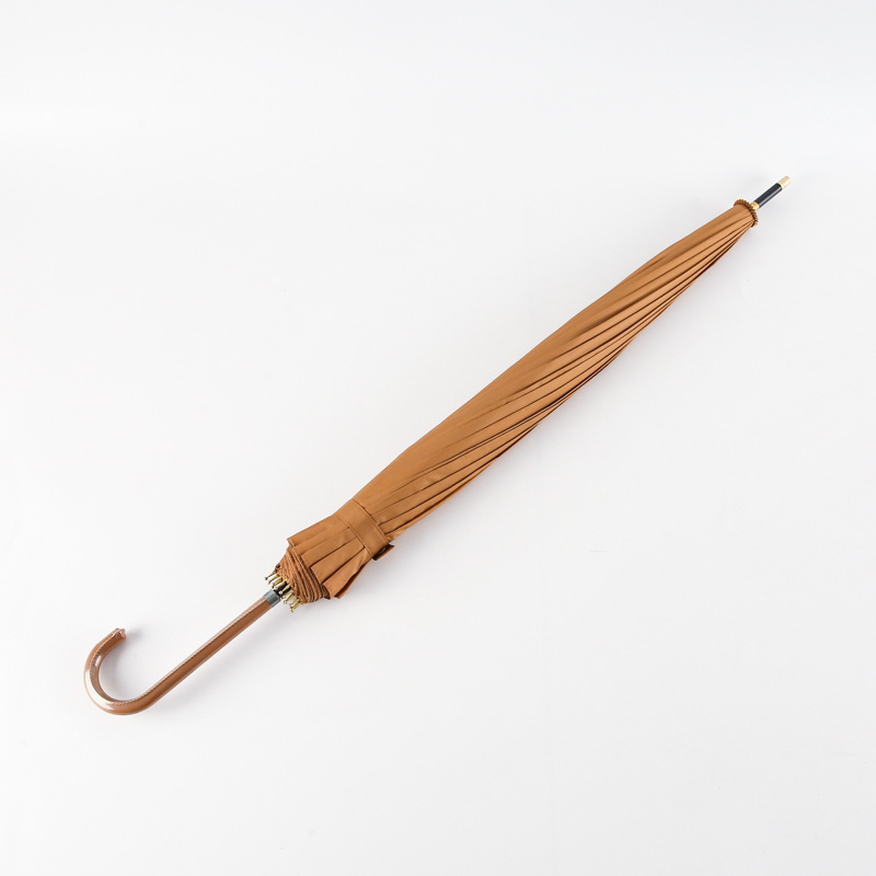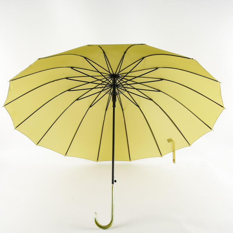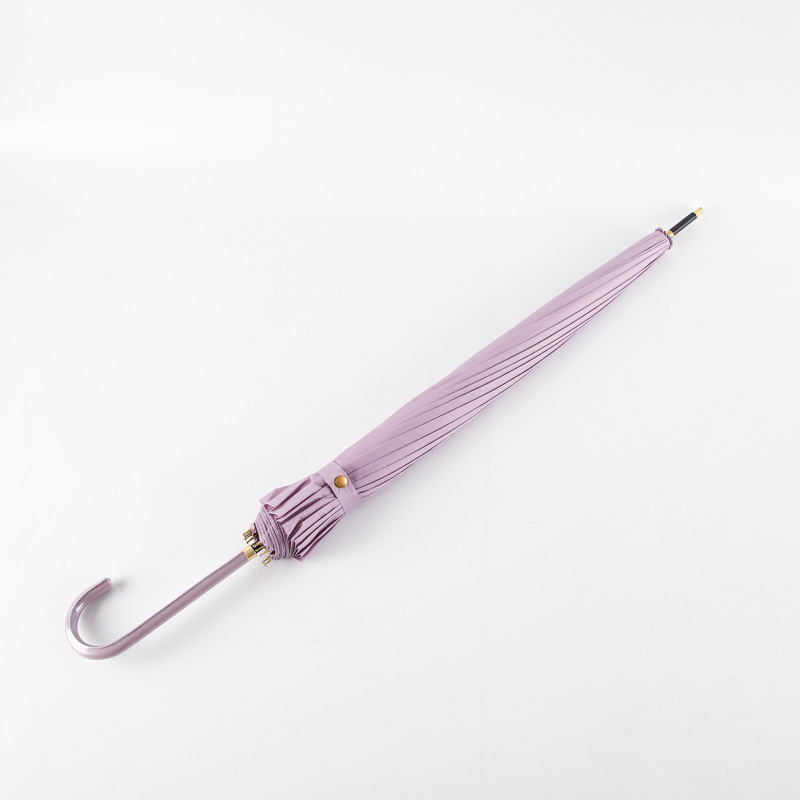 한국 16 뼈 피부 곡선 손잡이 소 신선한 단색 하이 컬러 값 자동 직선 손잡이 우산 인쇄 가능 로고 광고 우산 도매