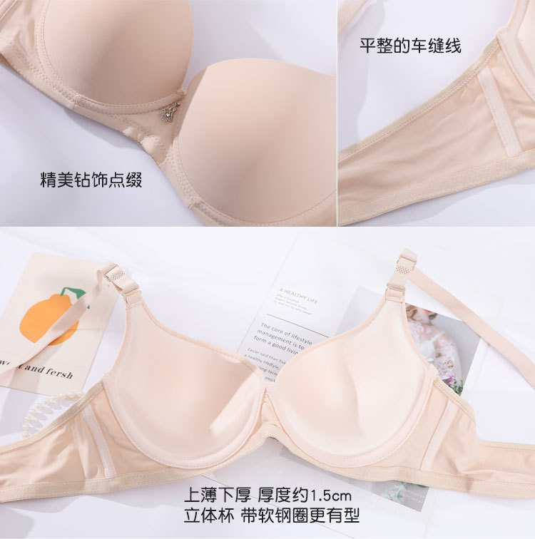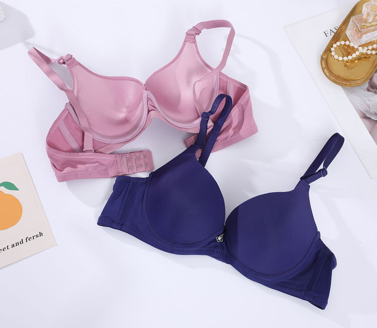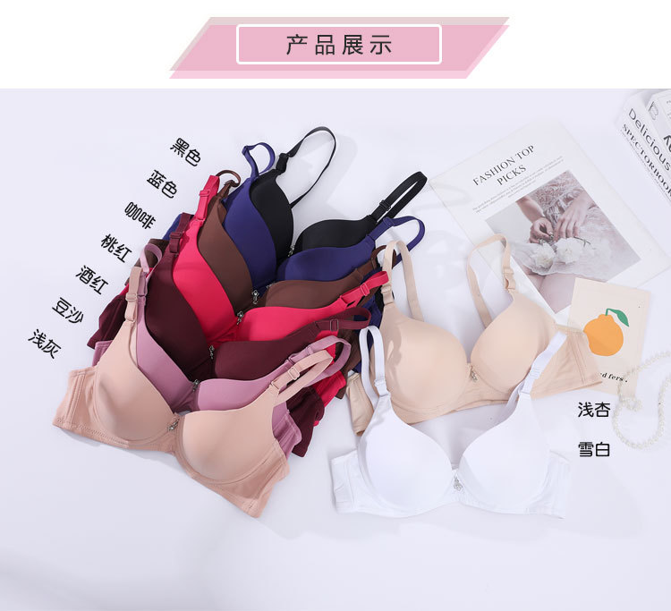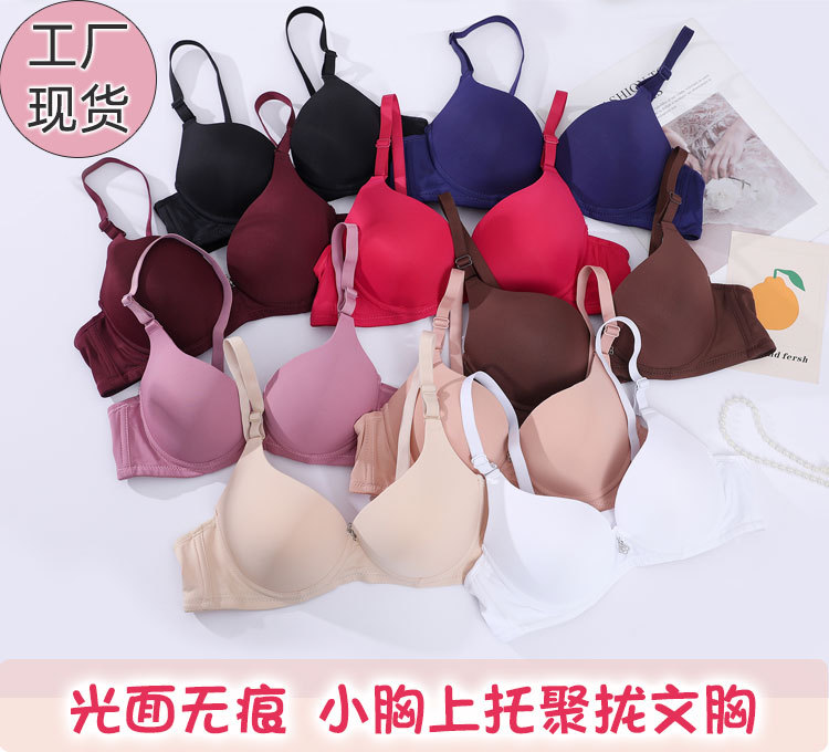 공장 재고 단색 광택 원활한 브래지어 여성의 상부 얇은 하부 두꺼운 상부 지원 원활한 속옷 일본식 작은 브래지어스토어 가기