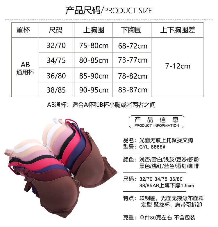 공장 재고 단색 광택 원활한 브래지어 여성의 상부 얇은 하부 두꺼운 상부 지원 원활한 속옷 일본식 작은 브래지어