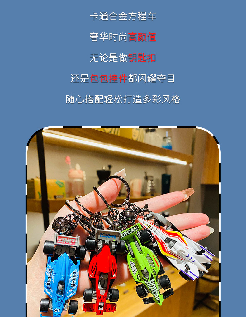 크리 에이 티브 만화 합금 방정식 자동차 모델 키 체인 여성용 책 가방 펜던트 인형 소년 자동차 키 펜던트 도매