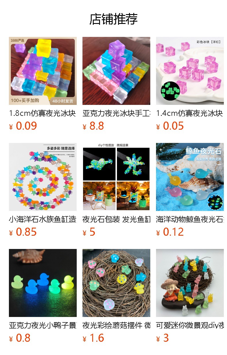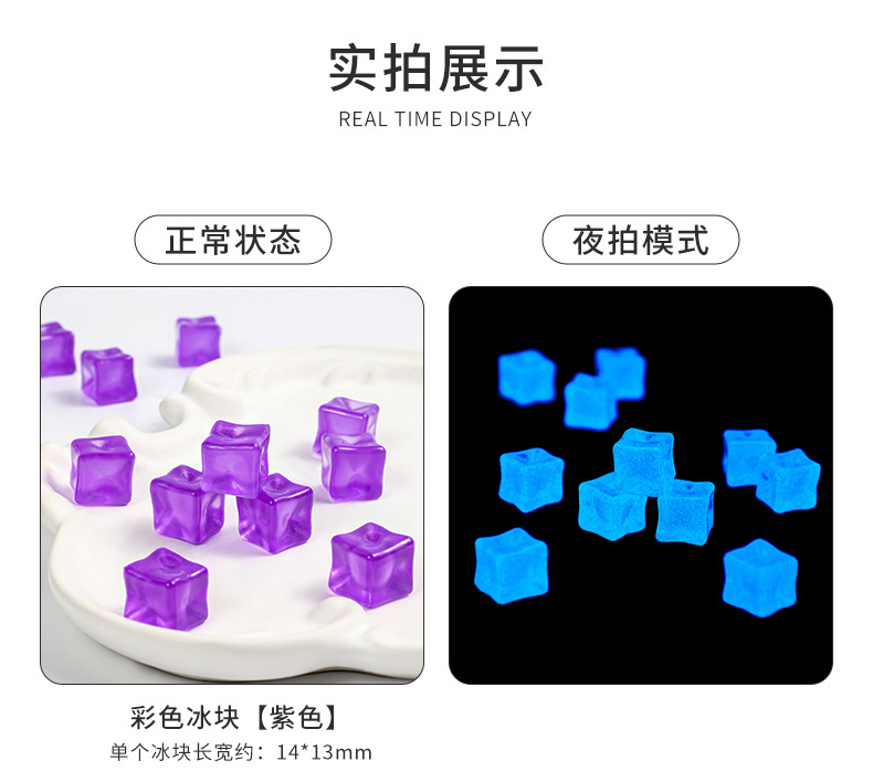 1.4cm 시뮬레이션 야광 아이스 컬러 야광 사각형 사진 소품 수제 보석 장식품 야광 스톤스토어 가기