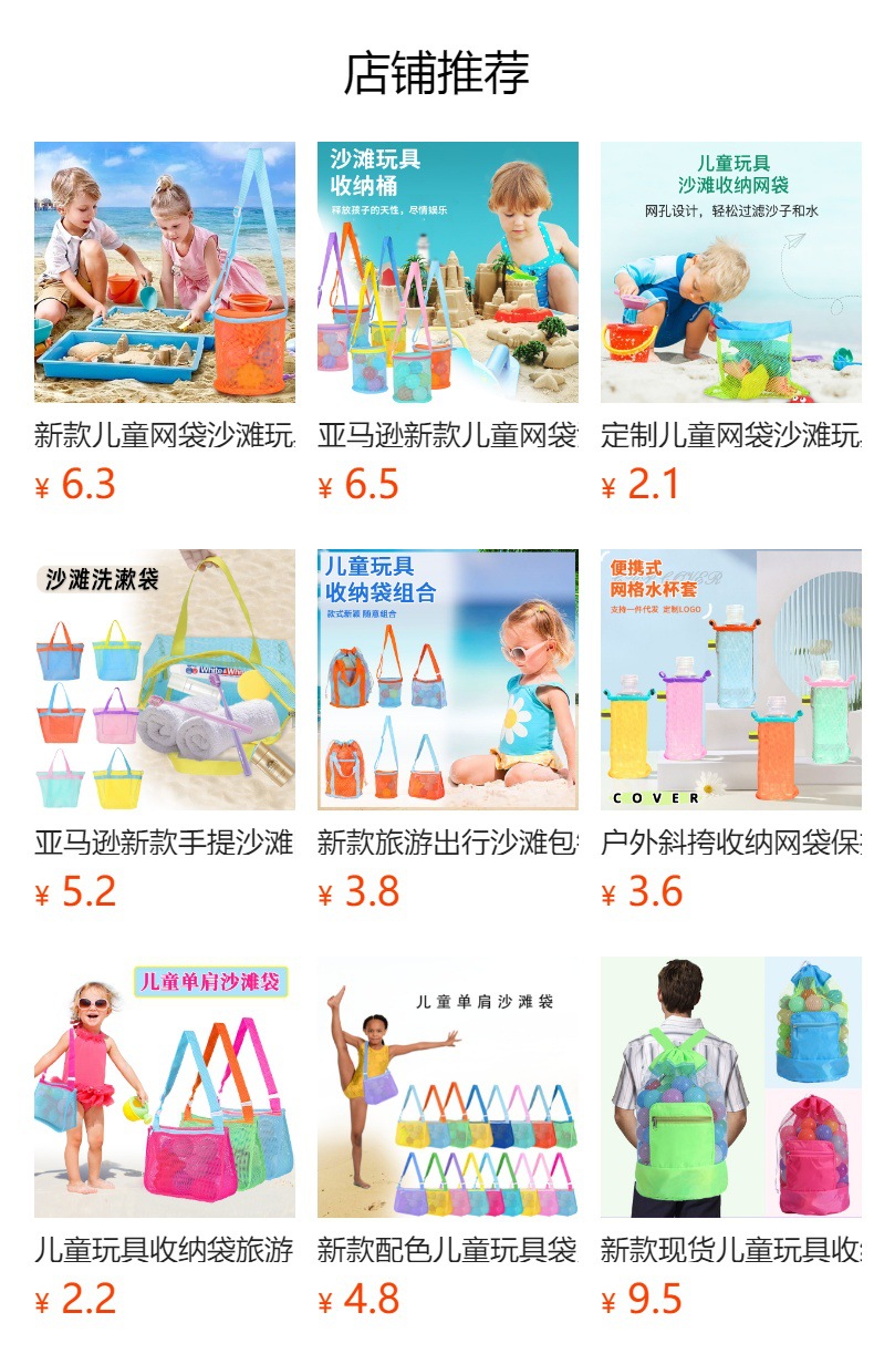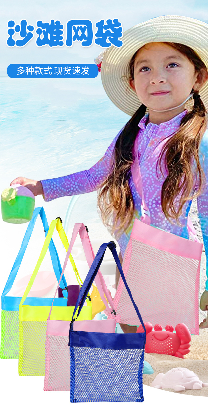2023 새로운 아마존 어린이 메쉬 가방 비치 장난감 보관 가방 모래 굴착 버클 조절 가능한 메쉬 비치 가방스토어 가기