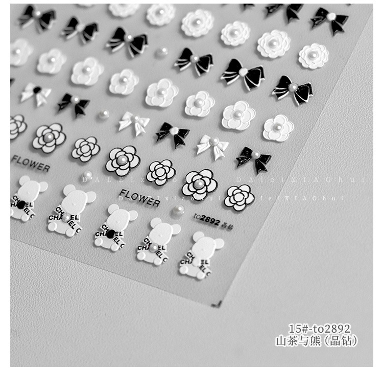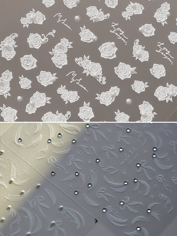 네일 아트 스티커 크리스탈 다이아몬드 화이트 리본 네일 장식 양각 로즈 펄 레이스 보우 데칼