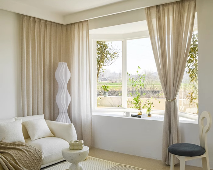 일본식 캐시미어 린넨 거즈 커튼 거실 침실 베이 창 연구 발코니 반 차양 커튼 사일런트 호스텔 스타일 홈스테이 커튼스토어 가기