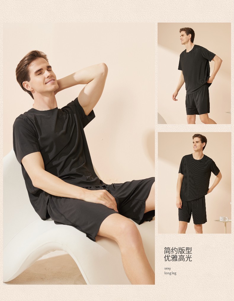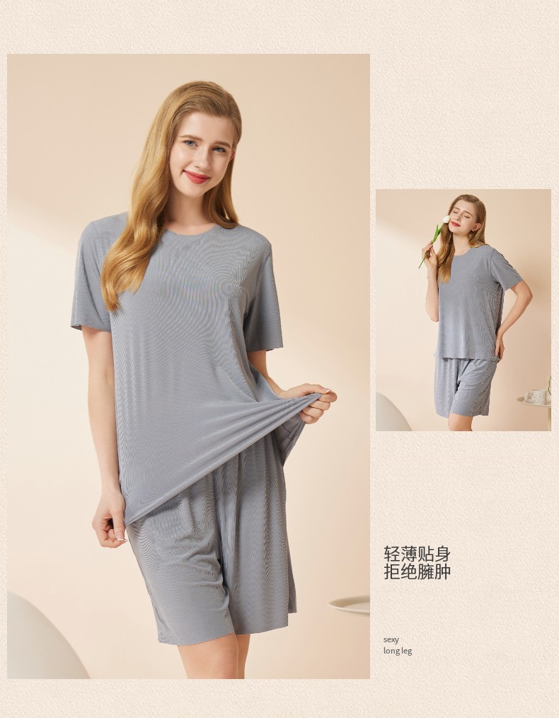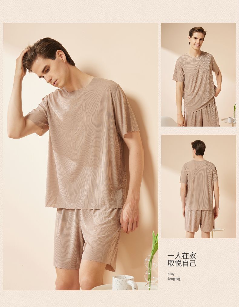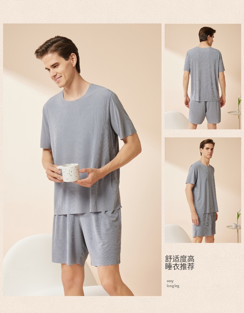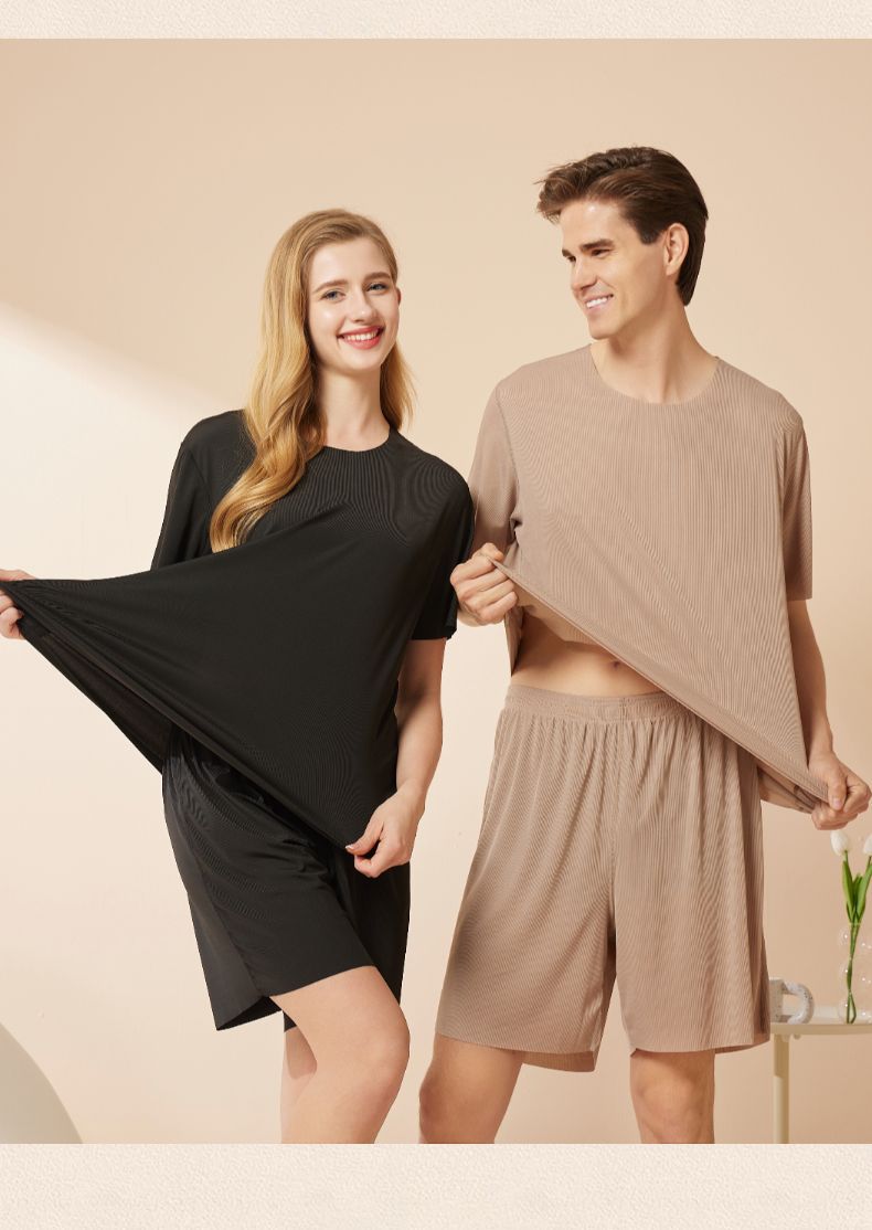 멋진 커플 잠옷 여자의 크루넥 반팔 잠옷 바지 세트 여름 반바지 남자의 얇은 추적 아이스 실크 가정 옷스토어 가기