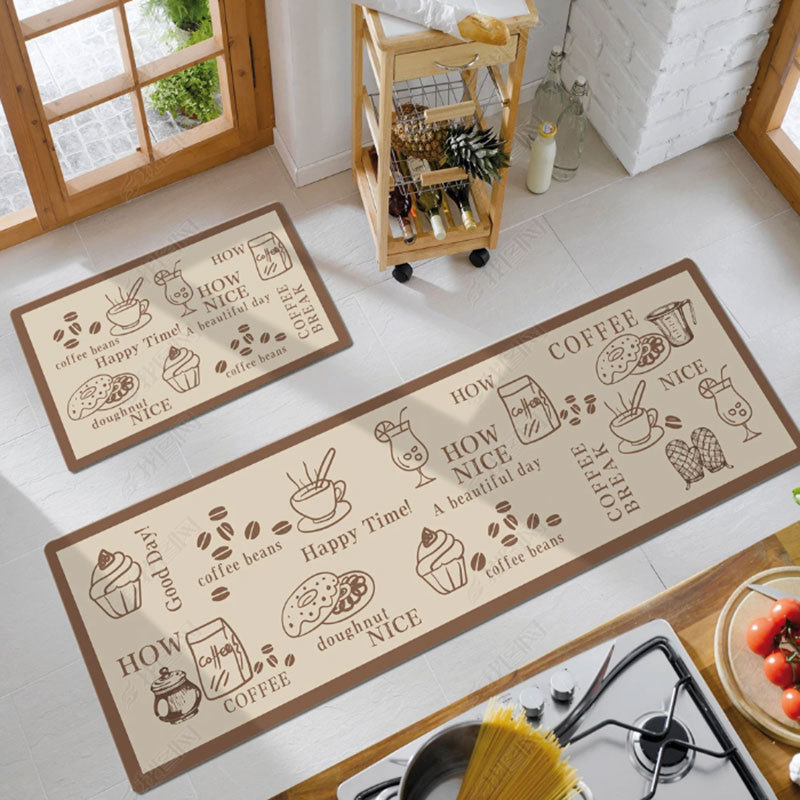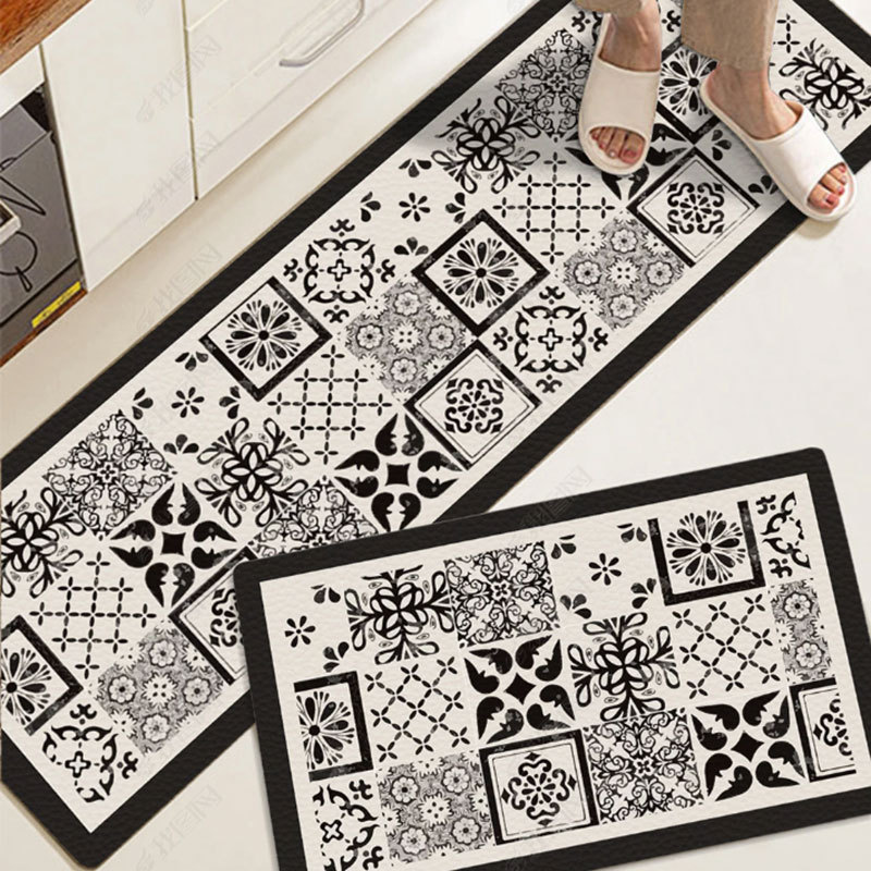 크로스 보더 심플 PVC 긴 주방 바닥 매트 PU 가죽 방수 및 오일 방지 발 매트 미끄럼 방지 가정용 닦지 않음스토어 가기
