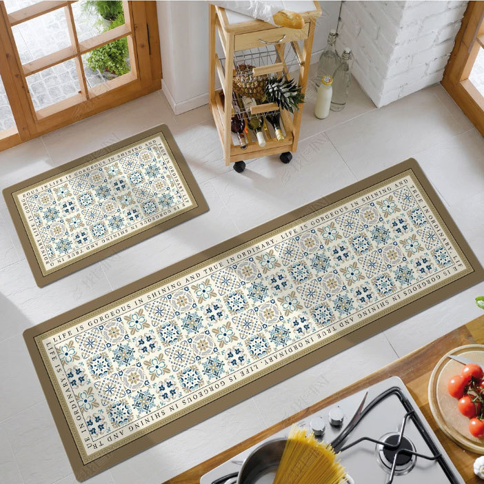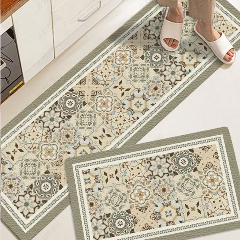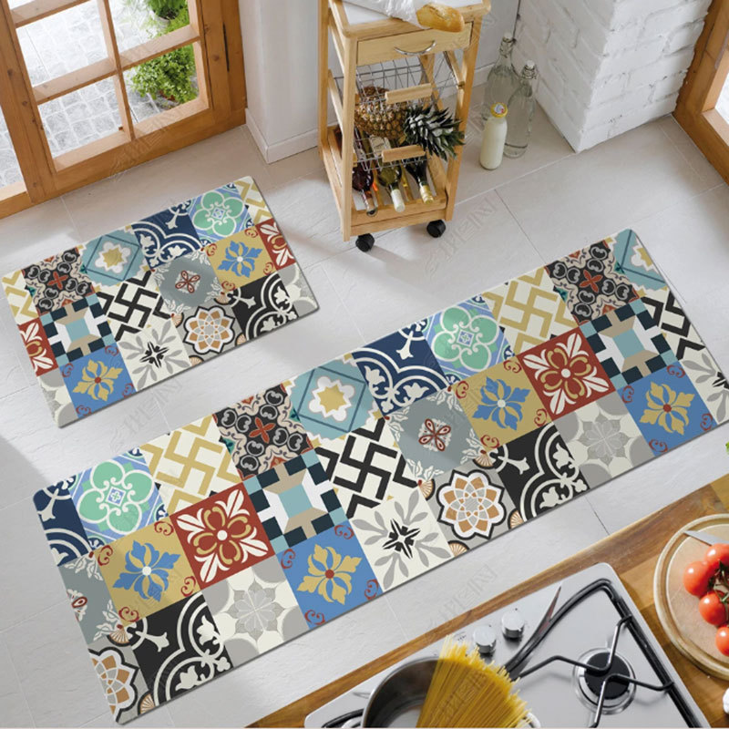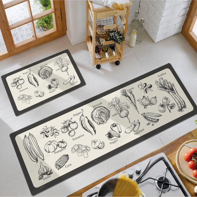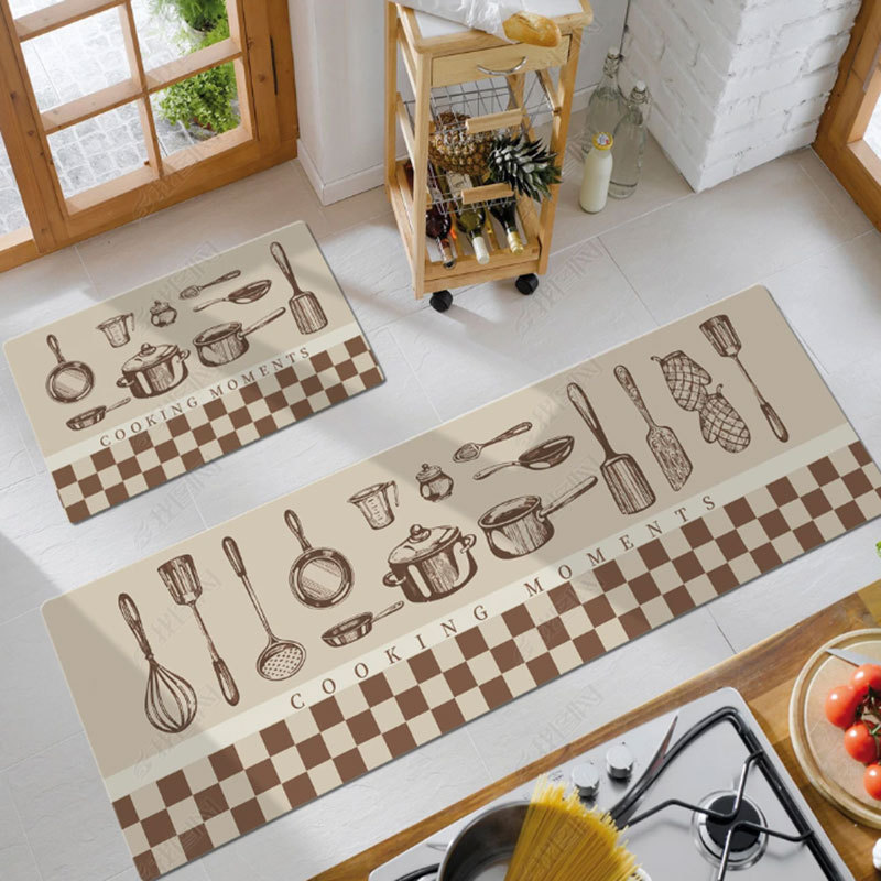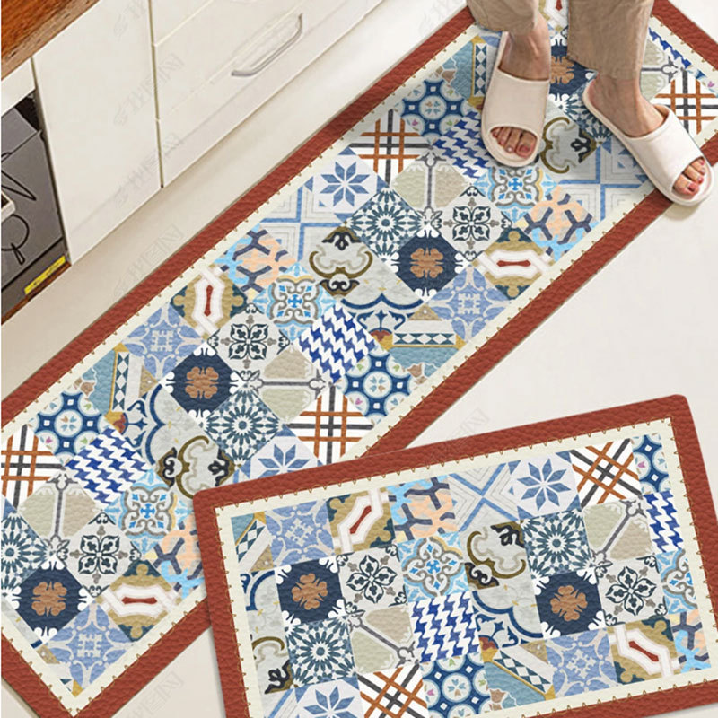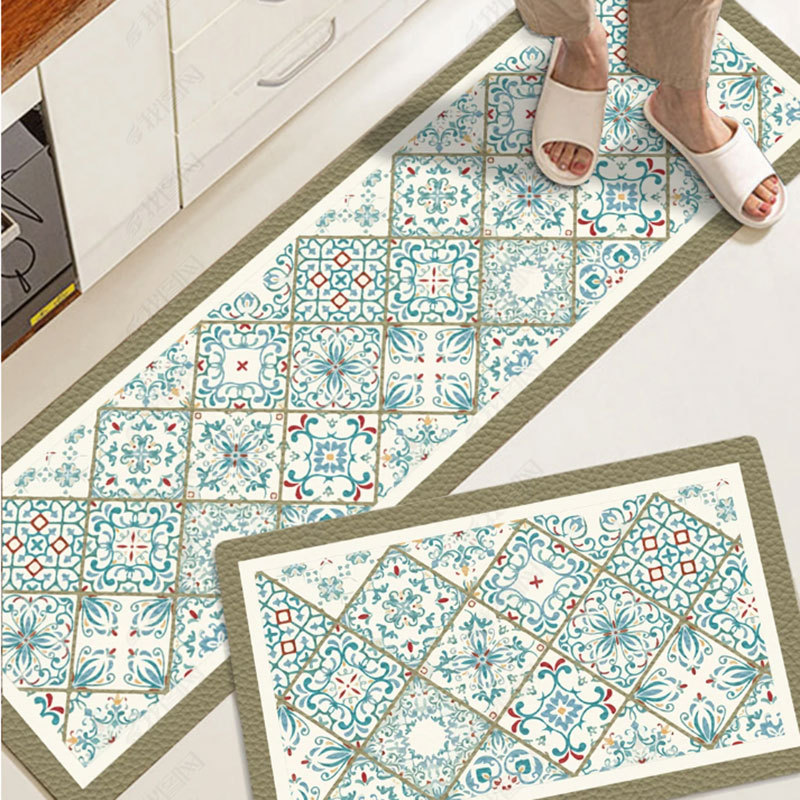 크로스 보더 심플 PVC 긴 주방 바닥 매트 PU 가죽 방수 및 오일 방지 발 매트 미끄럼 방지 가정용 닦지 않음