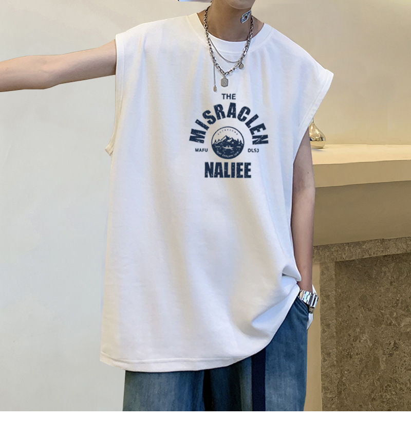 공장 직접 스포츠 조끼 남성용 느슨한 여름 타이드 브랜드 in 화이트 솔리드 컬러 피트니스 민소매 양복 조끼 면베이스스토어 가기
