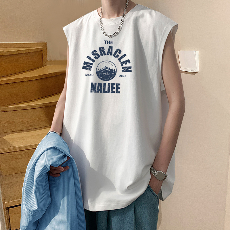 공장 직접 스포츠 조끼 남성용 느슨한 여름 타이드 브랜드 in 화이트 솔리드 컬러 피트니스 민소매 양복 조끼 면베이스
