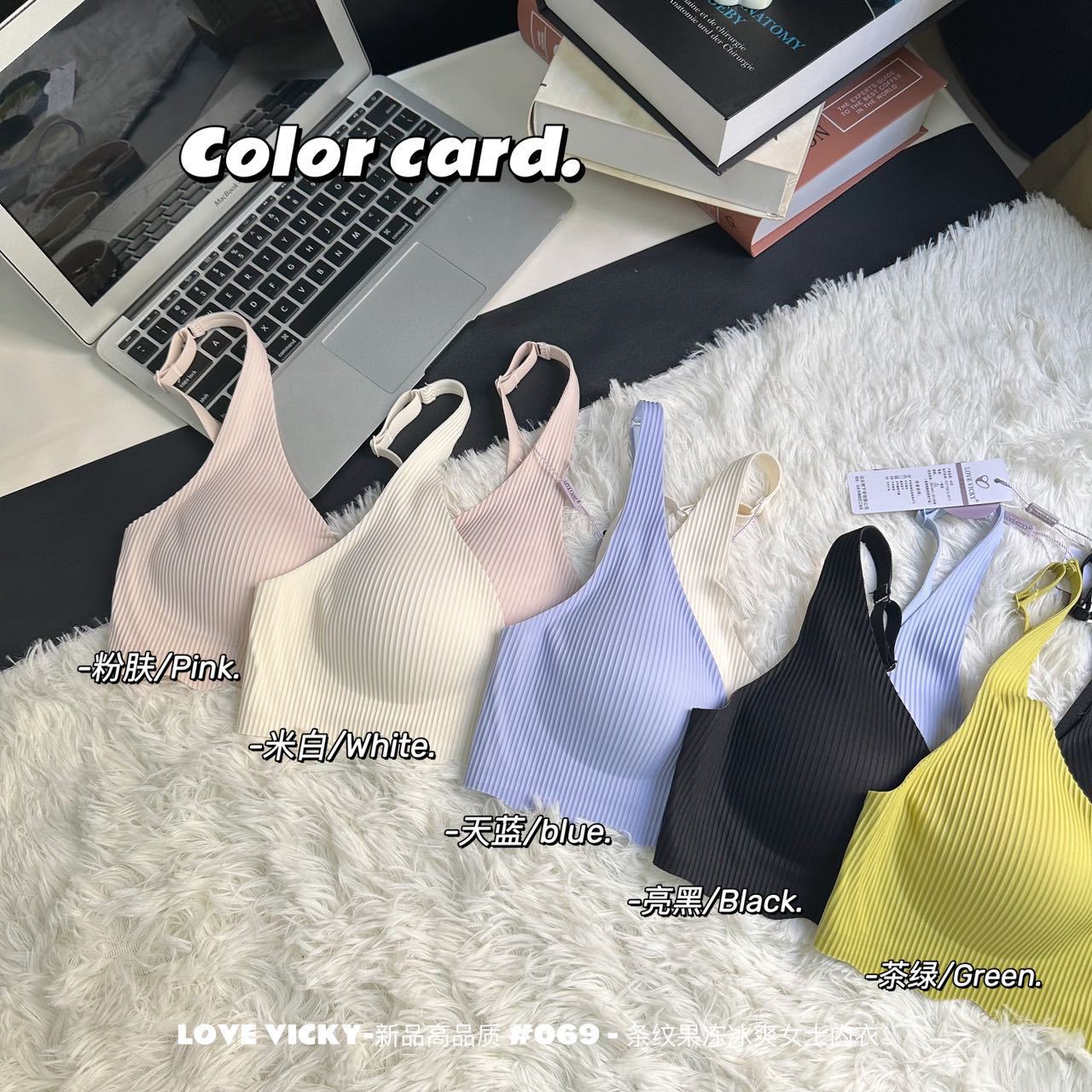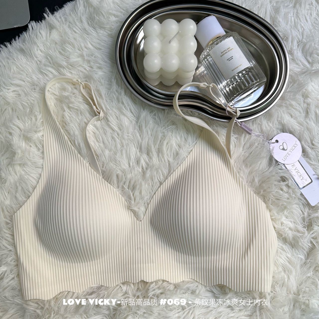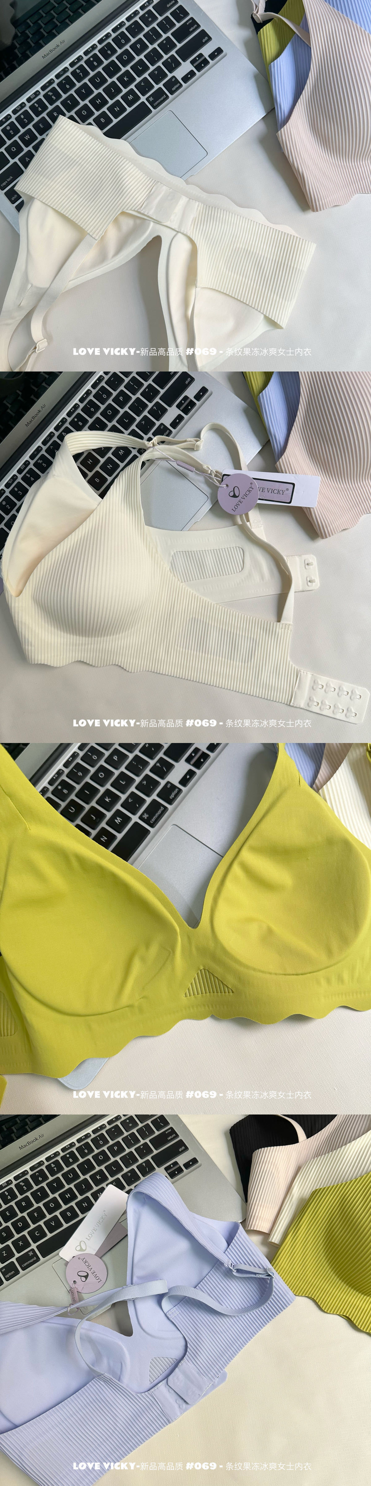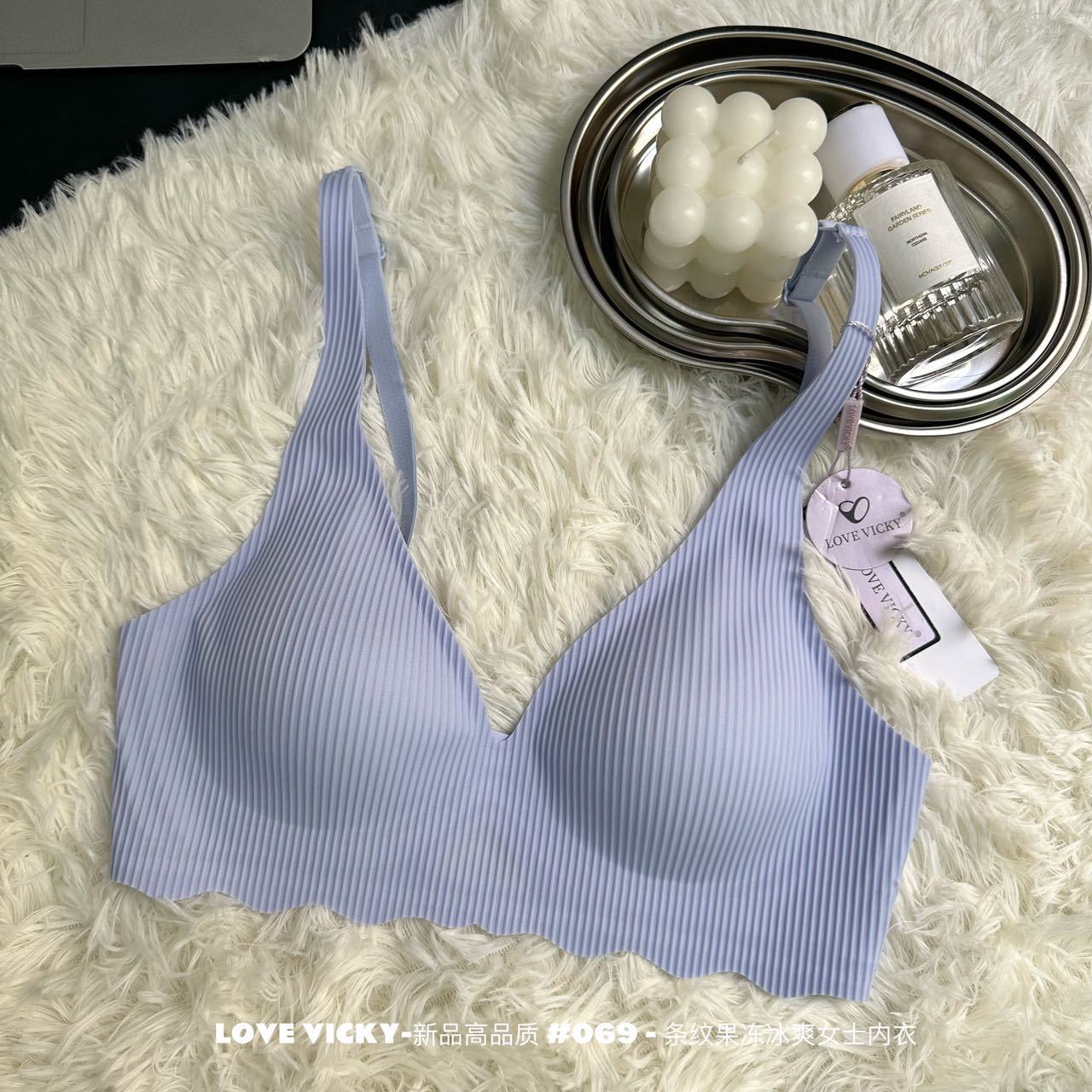 여름 얇은 줄무늬 젤리 아이스 시원한 흔적없는 란제리 소녀의 작은 가슴 빈 컵 없음 강철 반지 여성용 브래지어