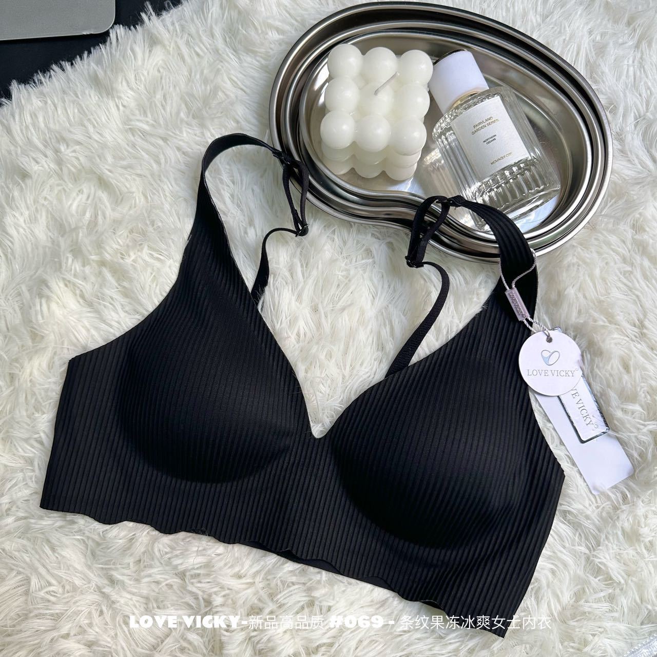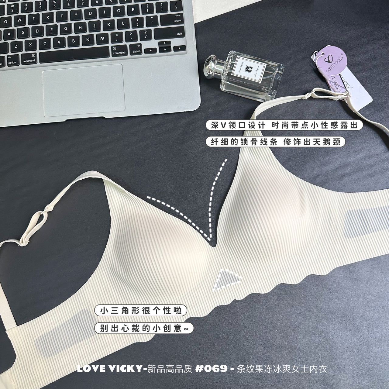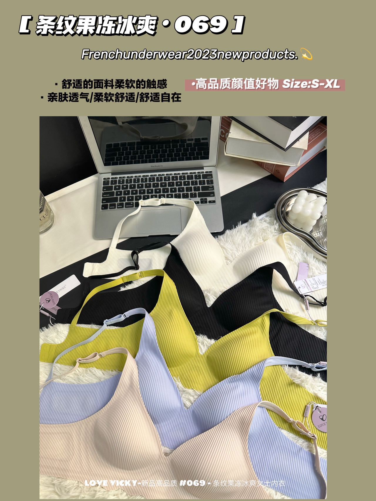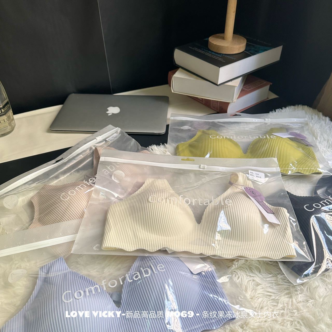 여름 얇은 줄무늬 젤리 아이스 시원한 흔적없는 란제리 소녀의 작은 가슴 빈 컵 없음 강철 반지 여성용 브래지어