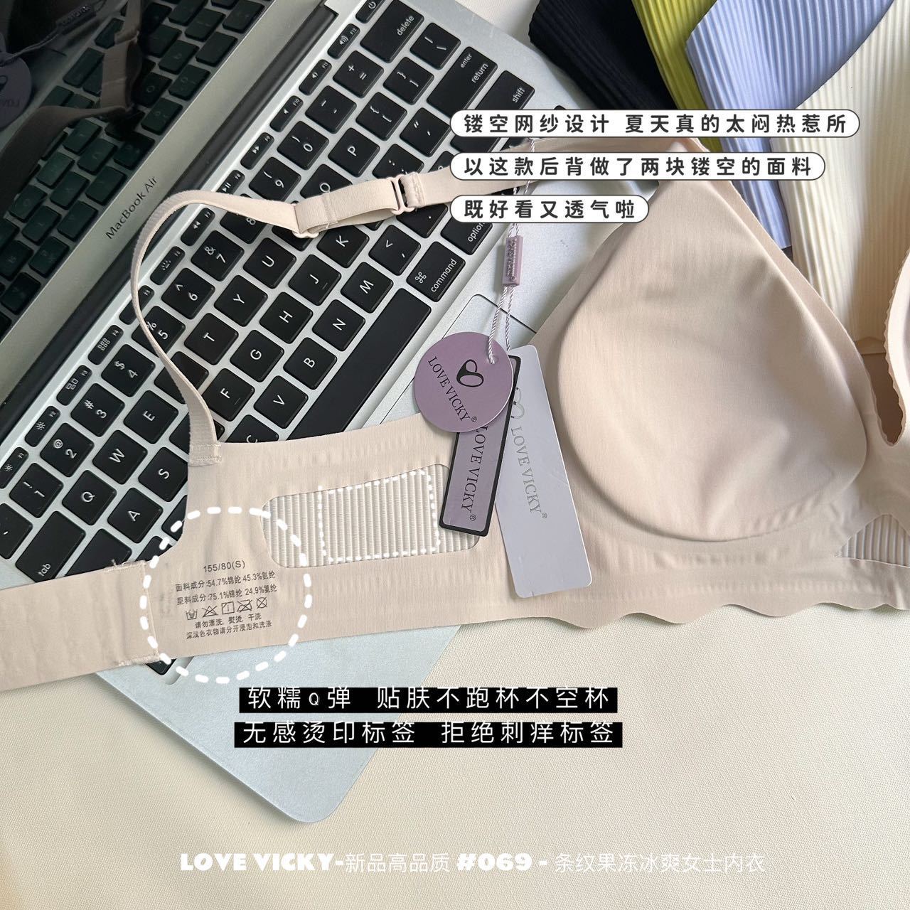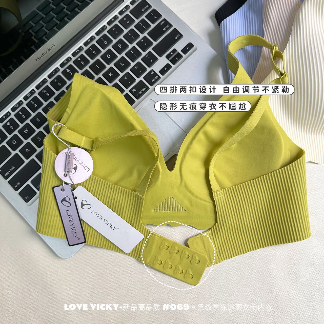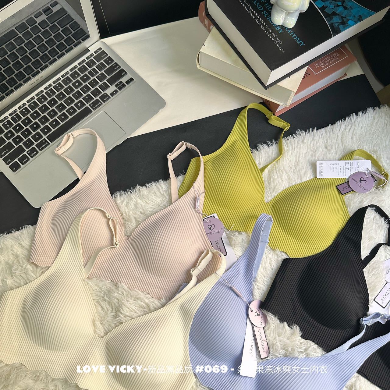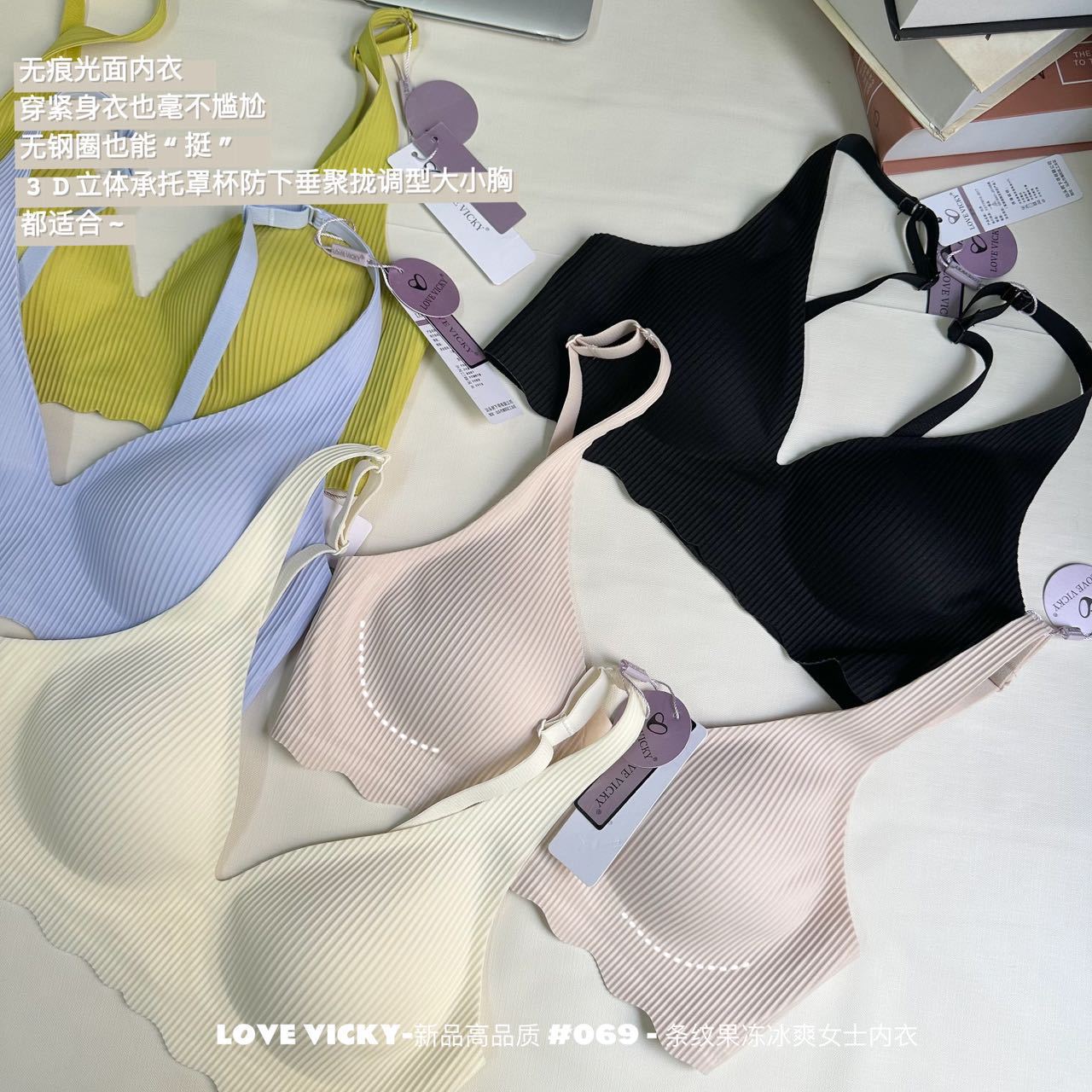 여름 얇은 줄무늬 젤리 아이스 시원한 흔적없는 란제리 소녀의 작은 가슴 빈 컵 없음 강철 반지 여성용 브래지어