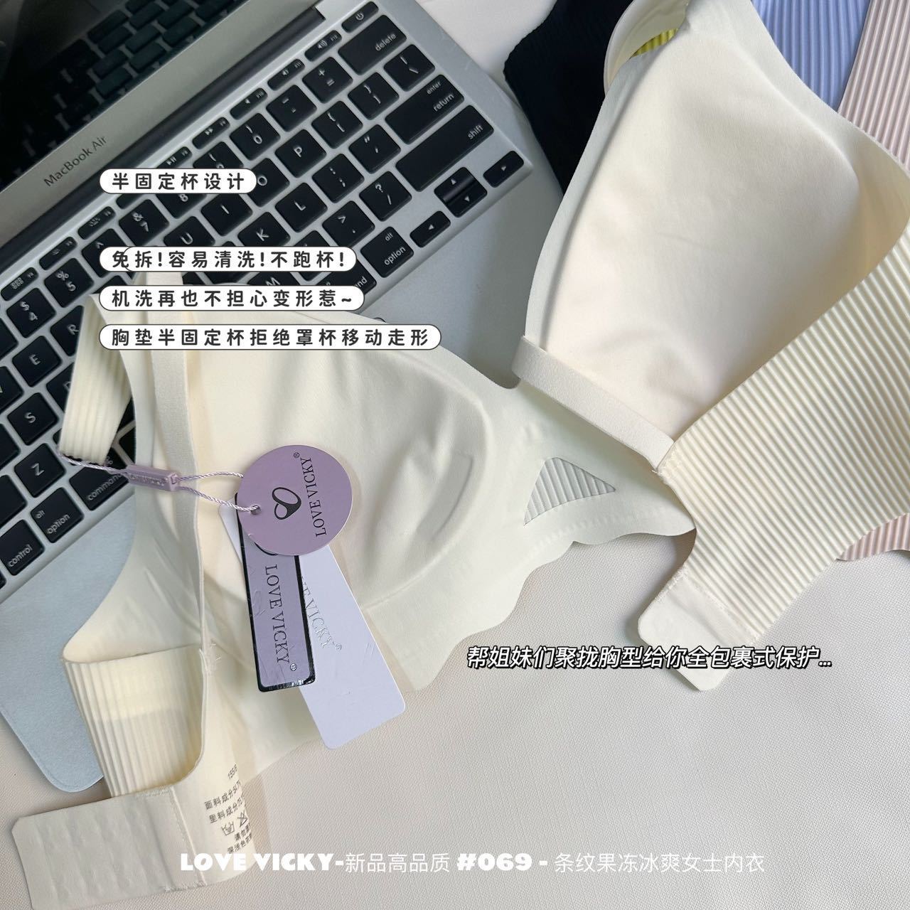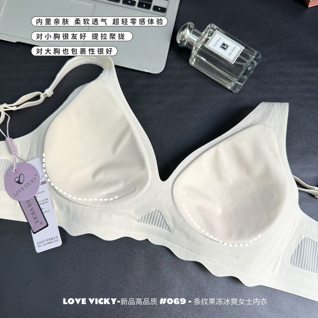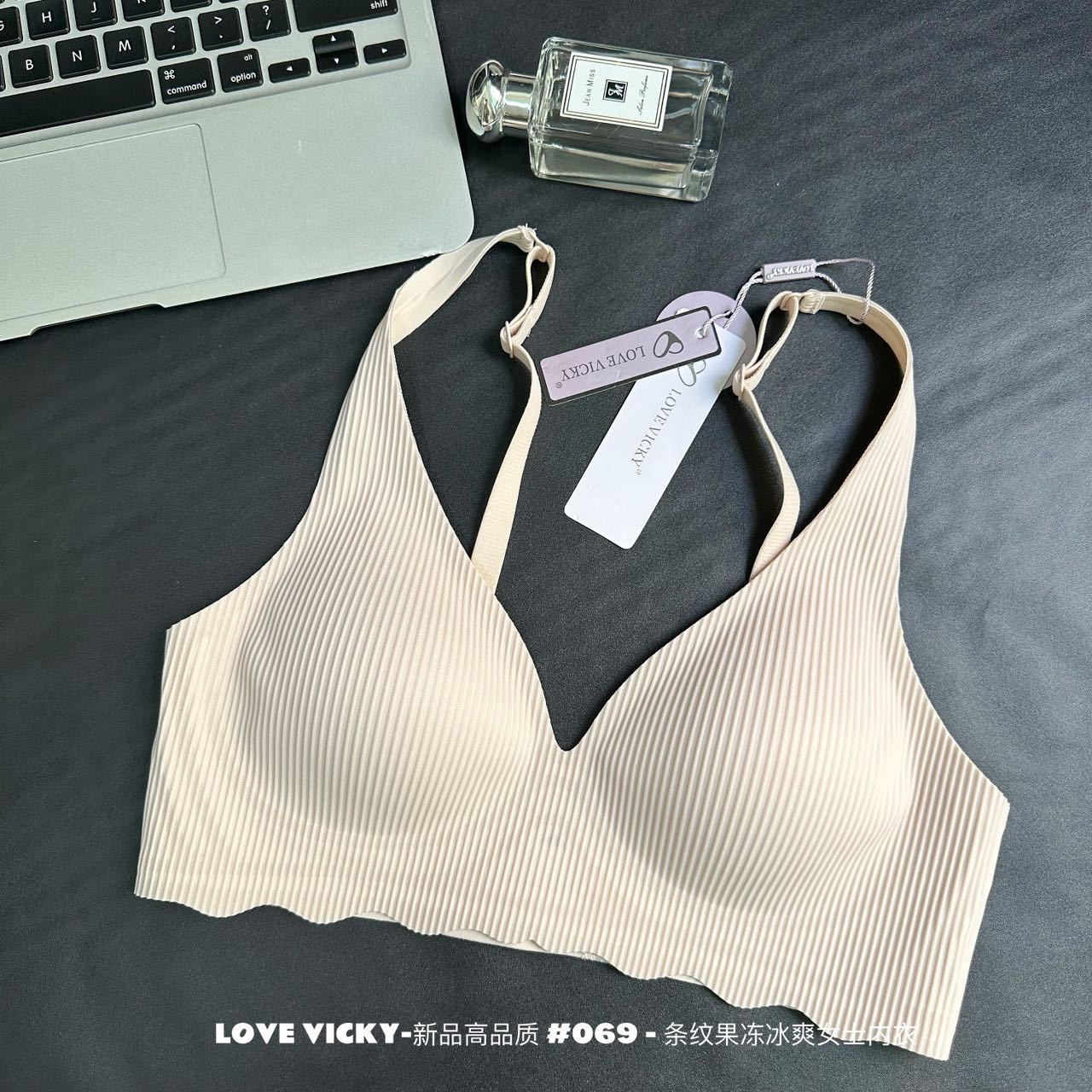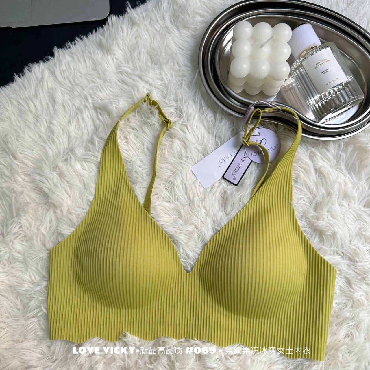 여름 얇은 줄무늬 젤리 아이스 시원한 흔적없는 란제리 소녀의 작은 가슴 빈 컵 없음 강철 반지 여성용 브래지어