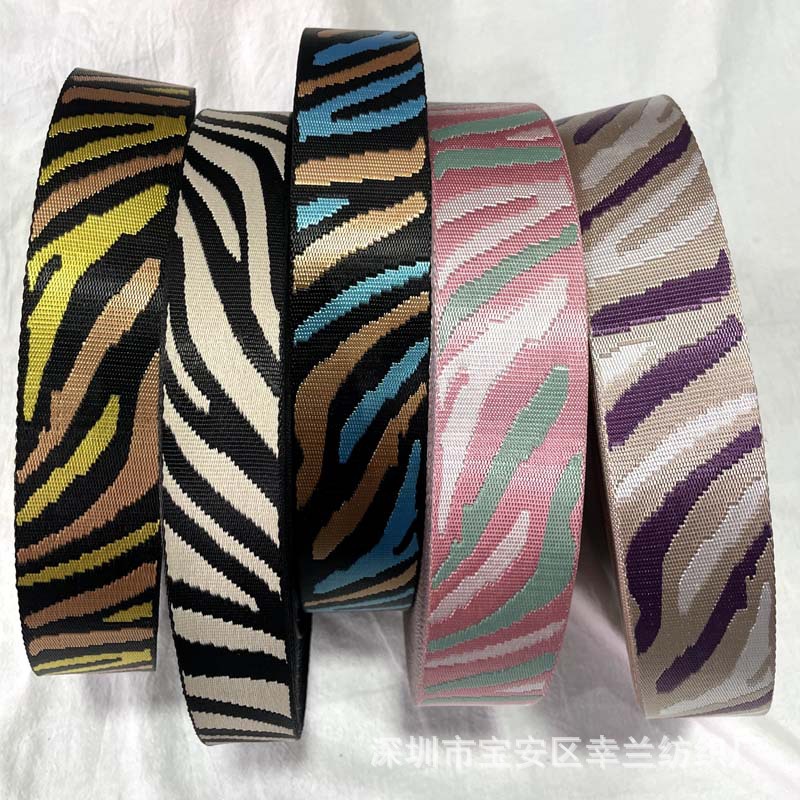 모조 나일론 얼룩말 패턴 자카드 리본 양면 자카드 벨트 두꺼운 리본 패션 어깨 끈 표범 무늬 꽃 리본 벨트스토어 가기