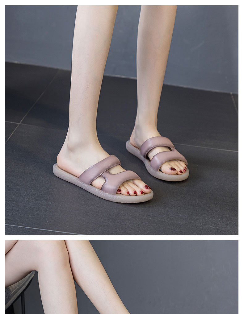 1층 소가죽 여성용 플랫 여름 아우터 통기성 솔리드 컬러 캐주얼 엄마 샌들 젤리 바닥 신발