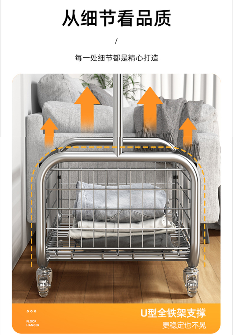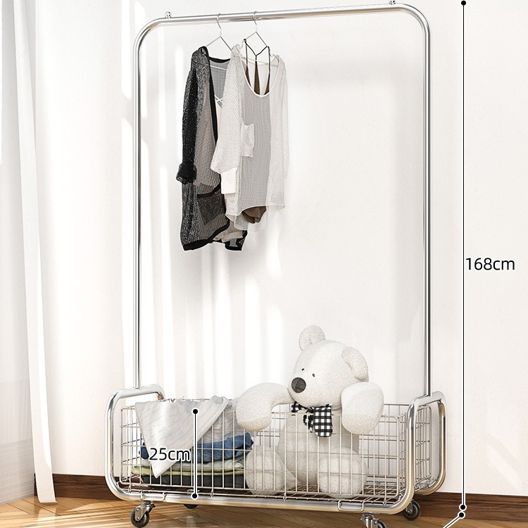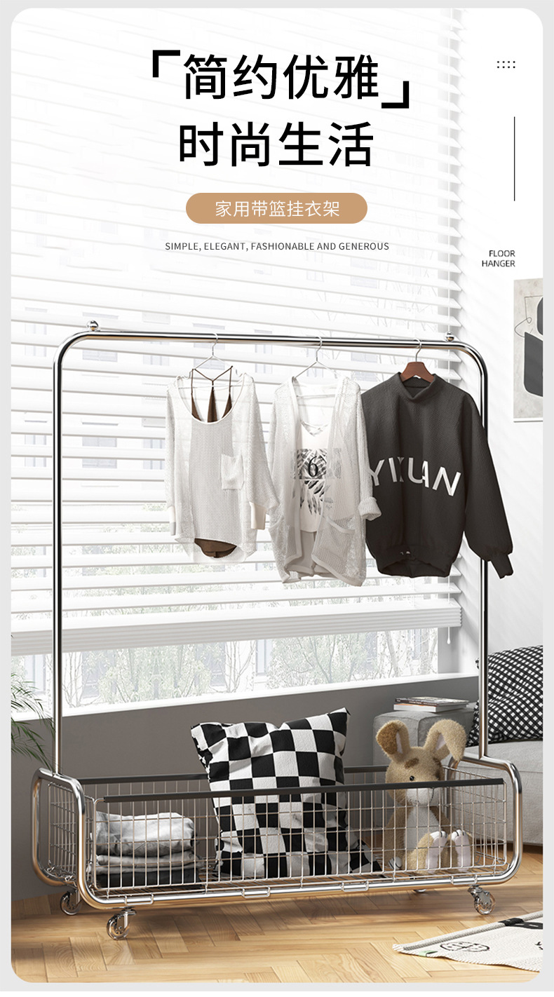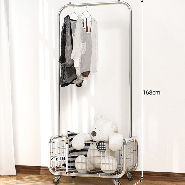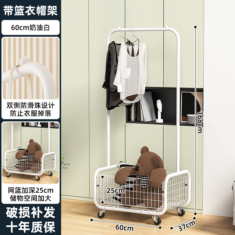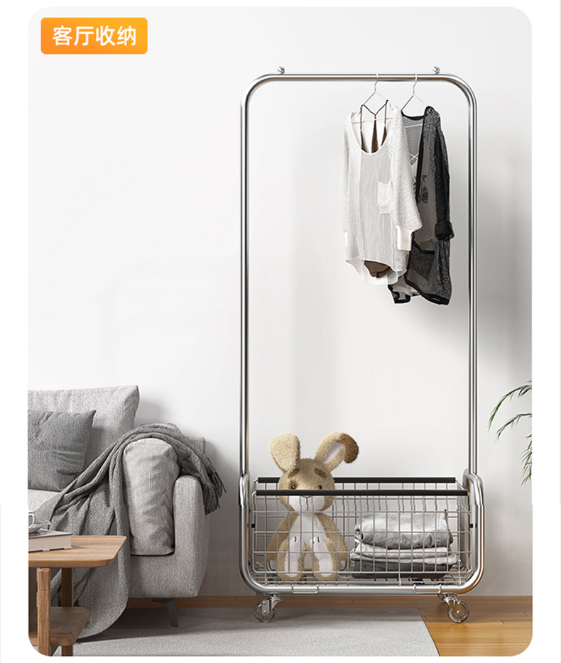 바닥 서있는 코트 랙 가정용 침실 옷 보관 옷걸이 바구니 더러운 옷 바구니 모바일 옷걸이