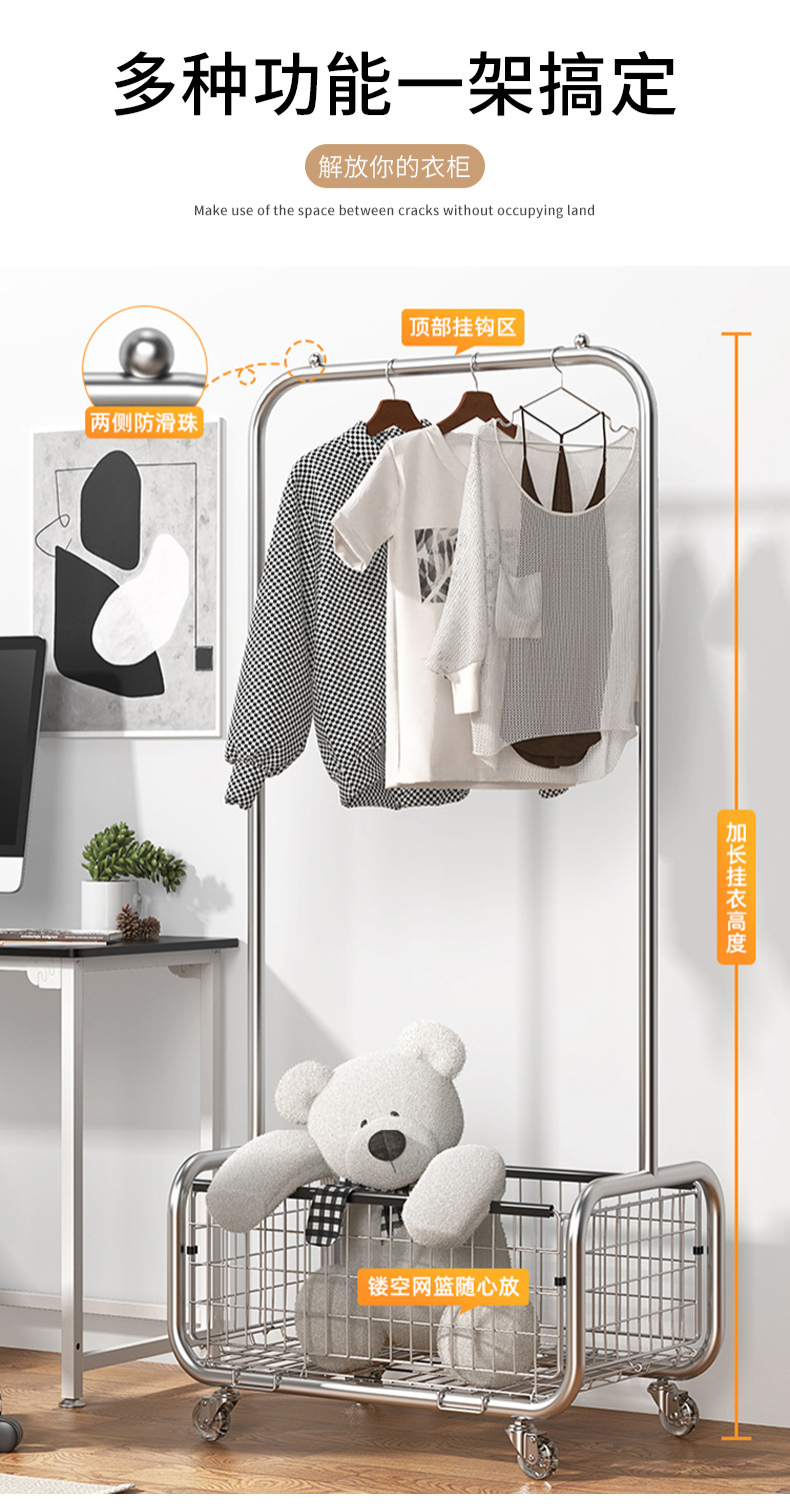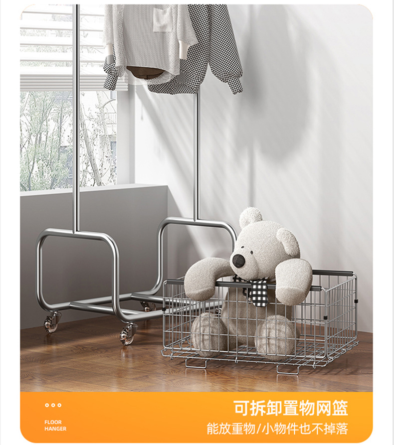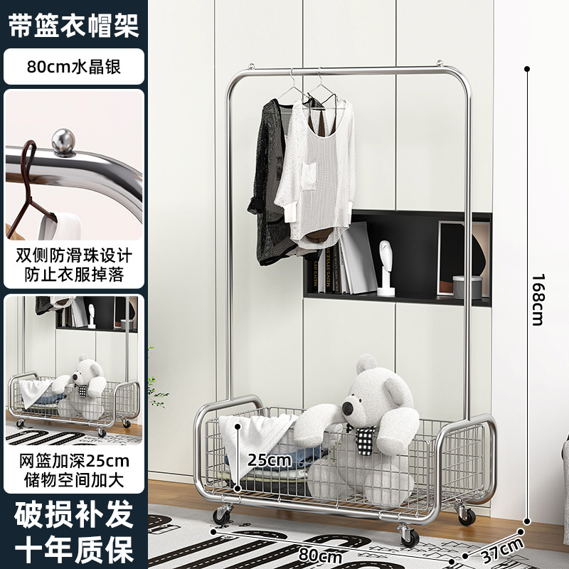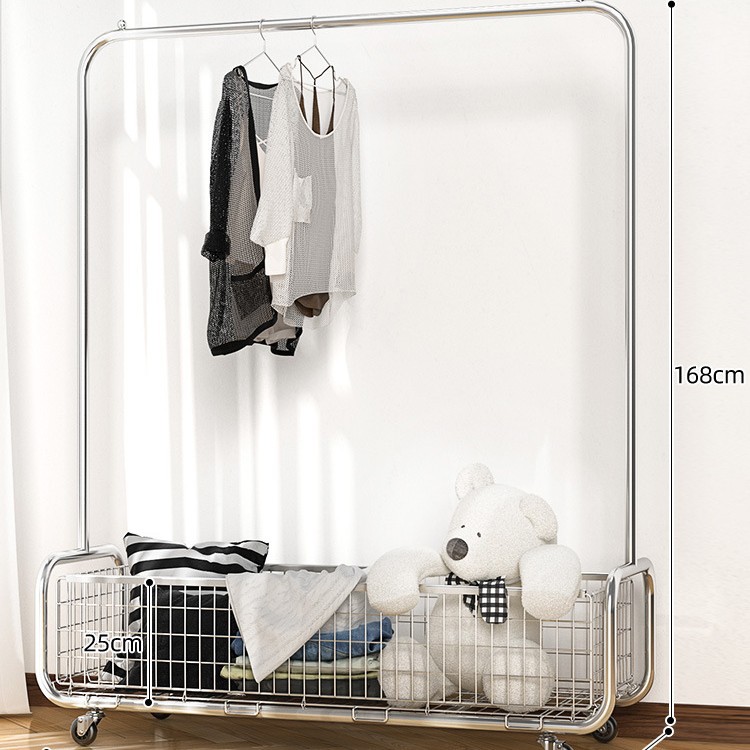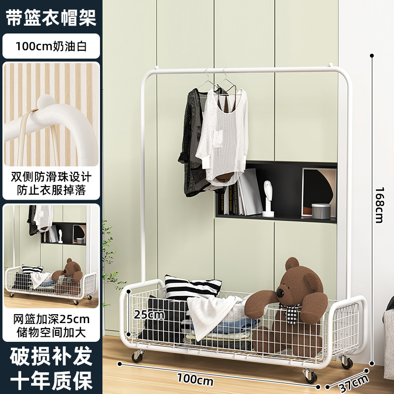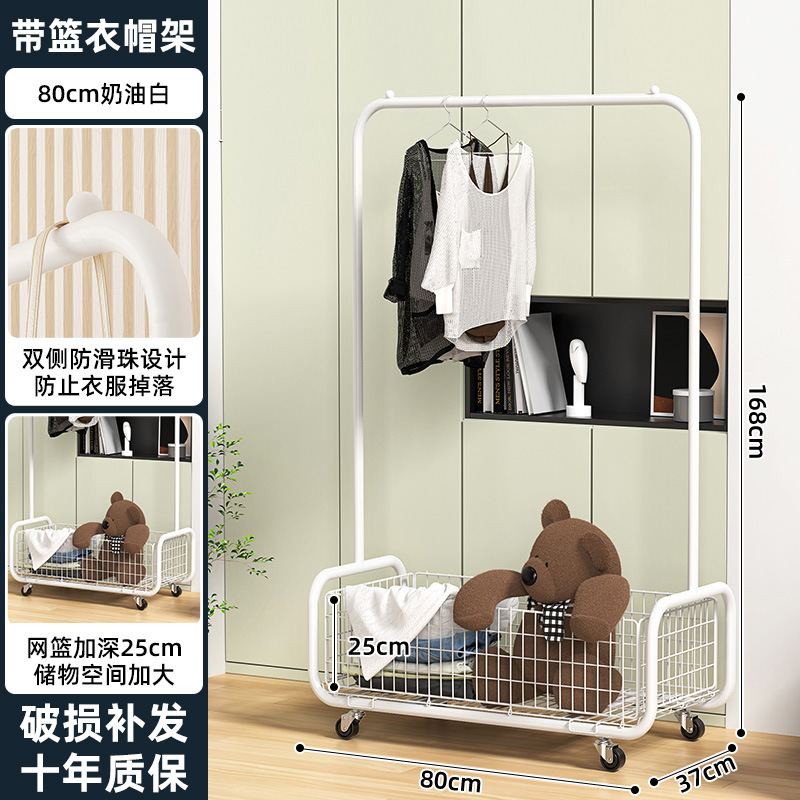 바닥 서있는 코트 랙 가정용 침실 옷 보관 옷걸이 바구니 더러운 옷 바구니 모바일 옷걸이