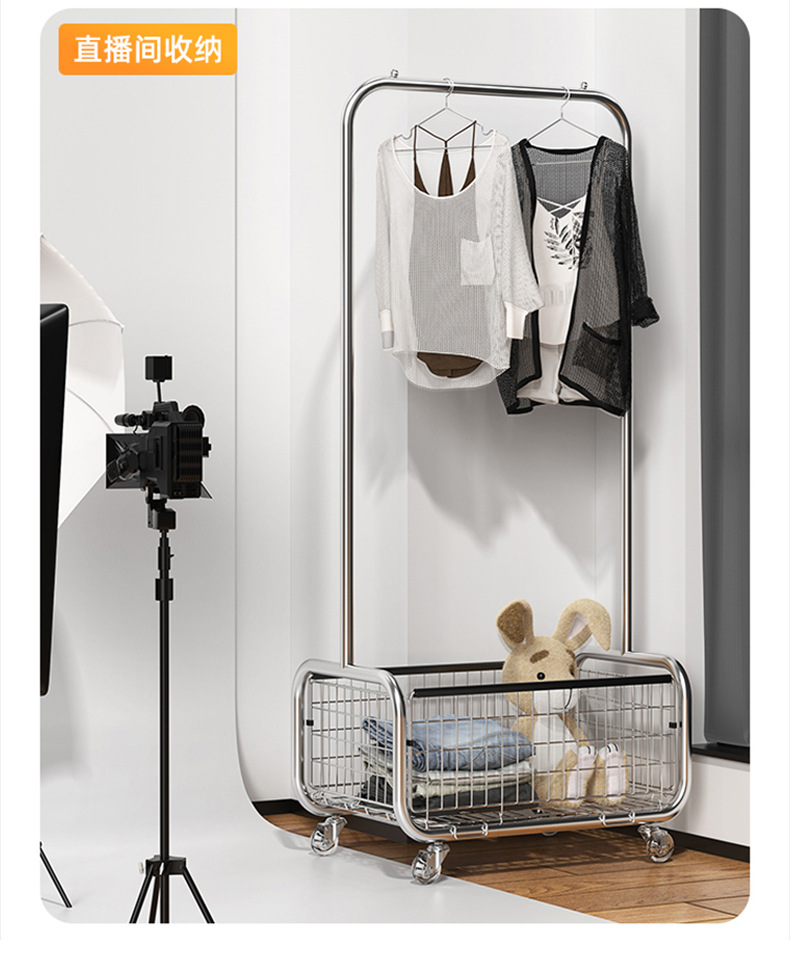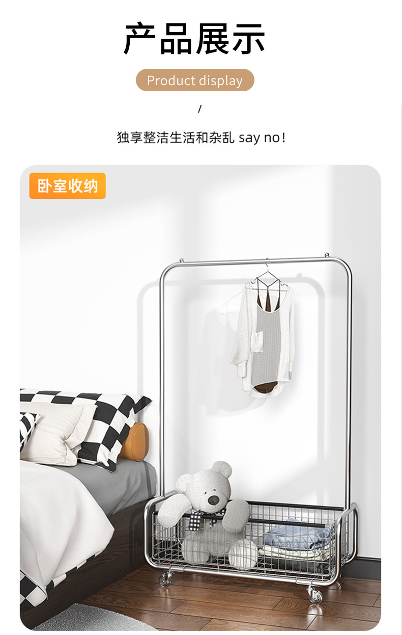 바닥 서있는 코트 랙 가정용 침실 옷 보관 옷걸이 바구니 더러운 옷 바구니 모바일 옷걸이스토어 가기