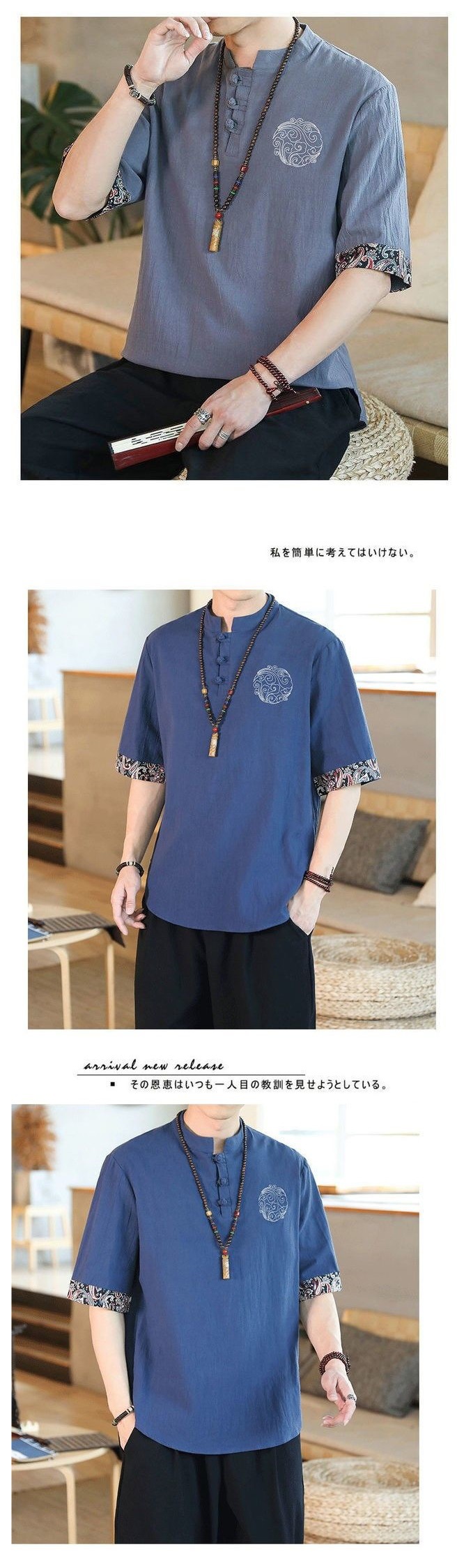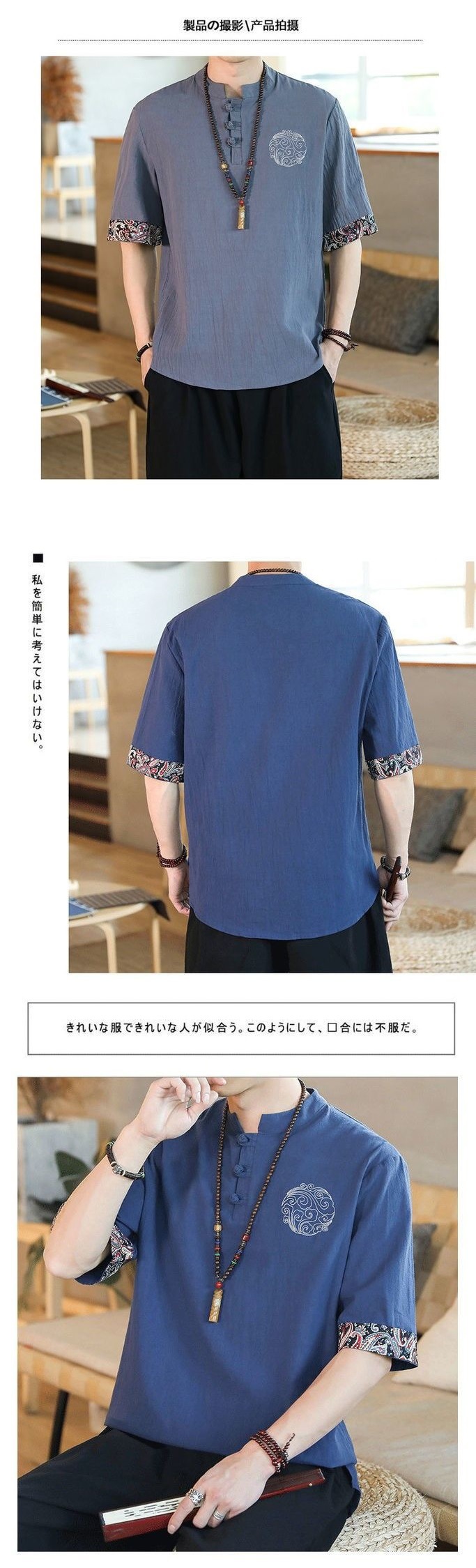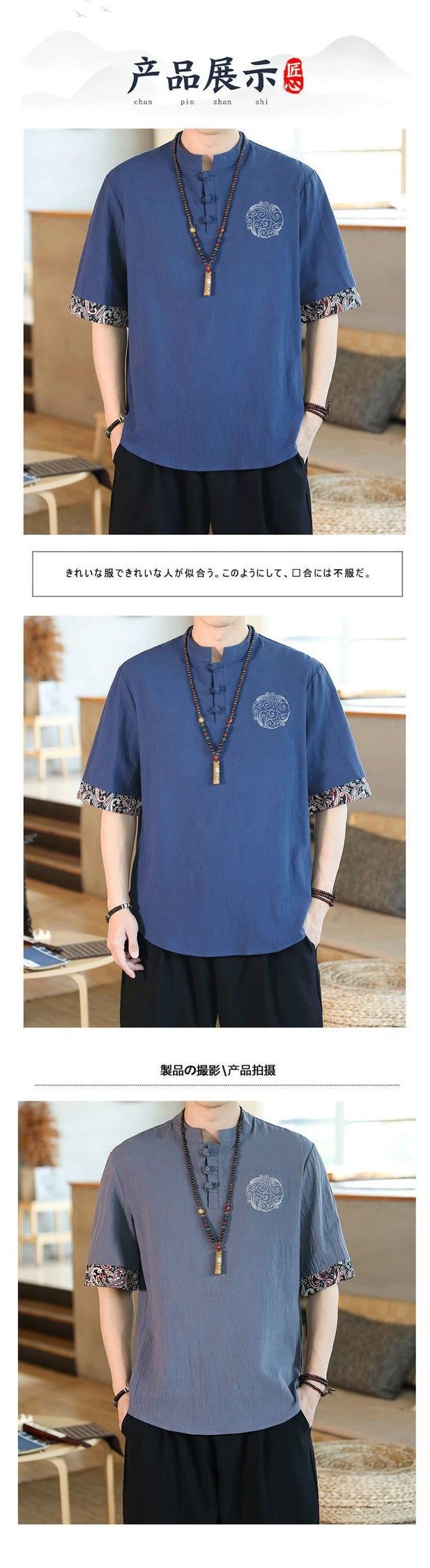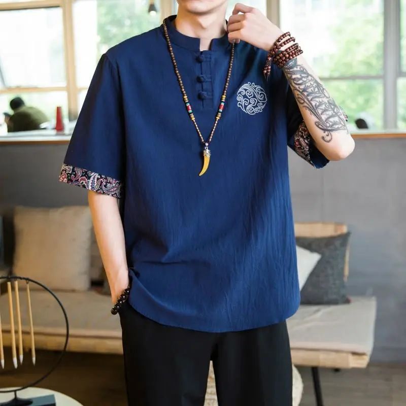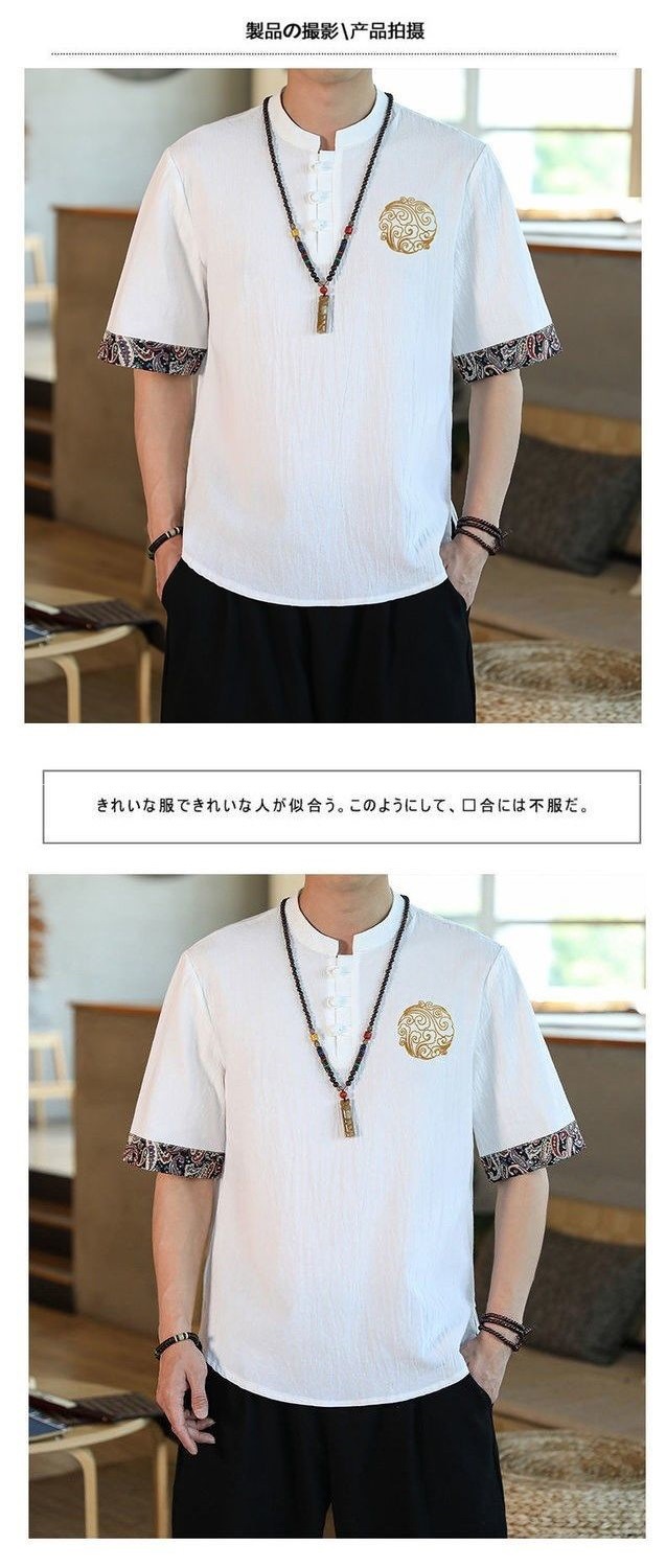 패션 브랜드 여름 중국 스타일 린넨 반팔 티셔츠 남성용 트렌디 한 청소년 반소매 얇은 남성면 및 린넨 바닥 셔츠스토어 가기
