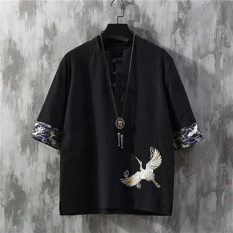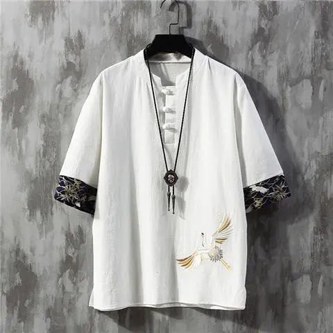 패션 브랜드 여름 중국 스타일 린넨 반팔 티셔츠 남성용 트렌디 한 청소년 반소매 얇은 남성면 및 린넨 바닥 셔츠