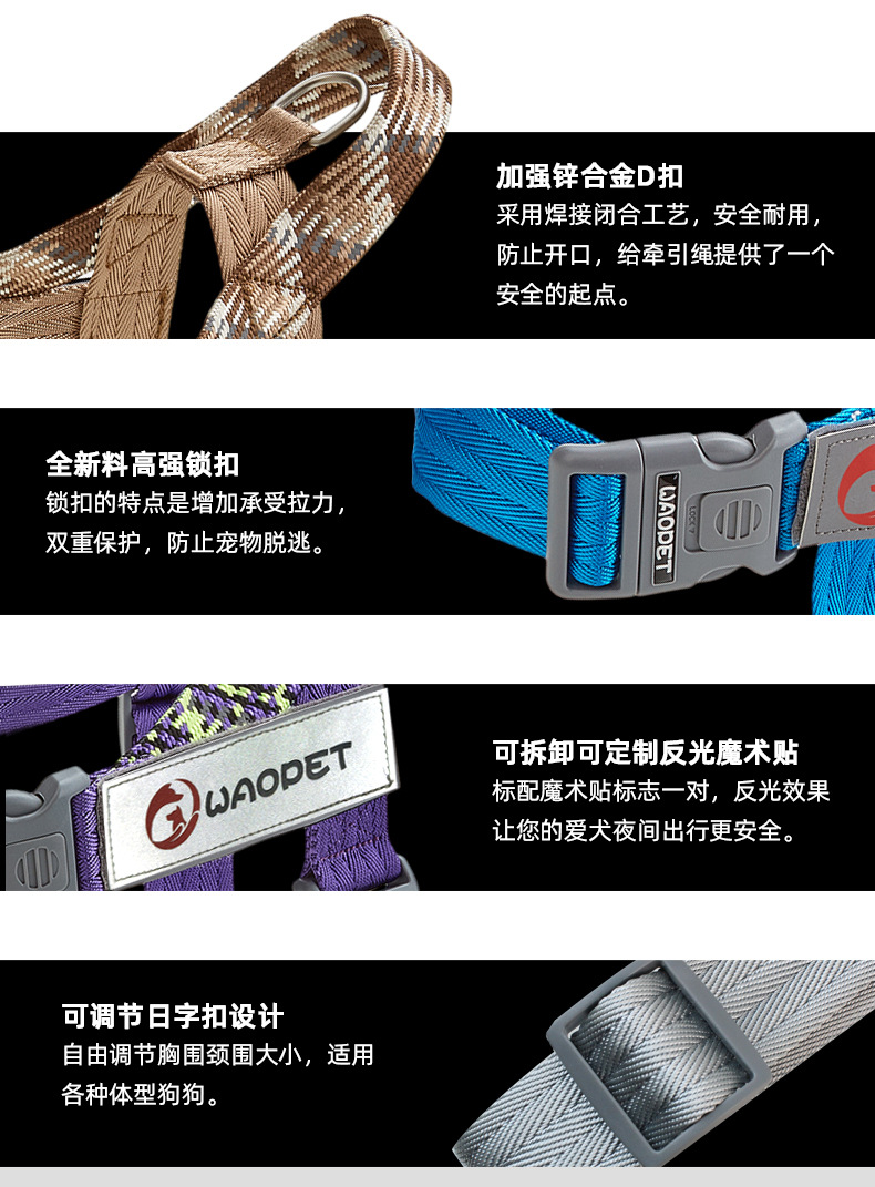 WAOPET 새로운 개 로프 개 Leash 칼라 칼라 애완 동물 용품 통기성 큰 개 가슴 스트랩