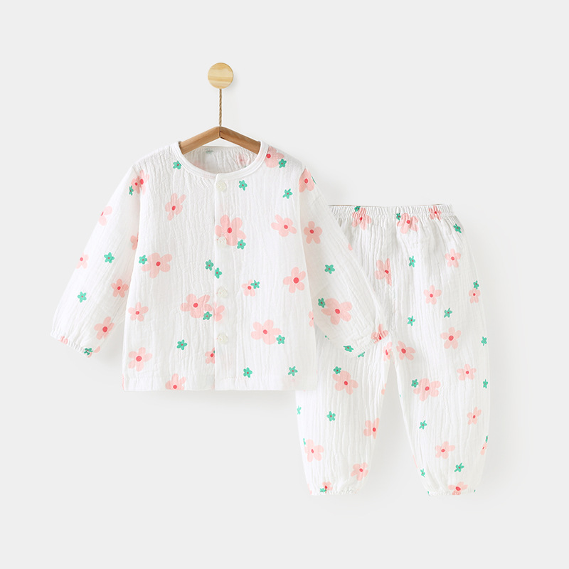 어린이 잠옷 여름 얇은 순면 분할 긴팔 아기 에어컨 의류 세트 속옷 소년 소녀 가정 의류
