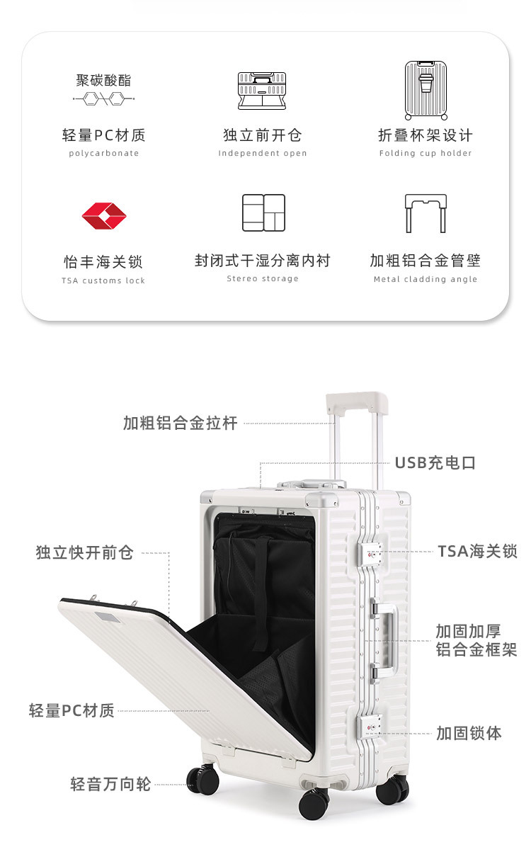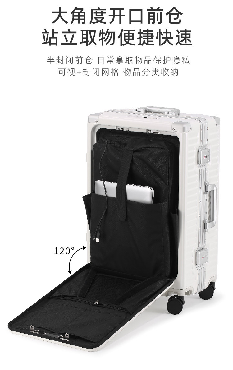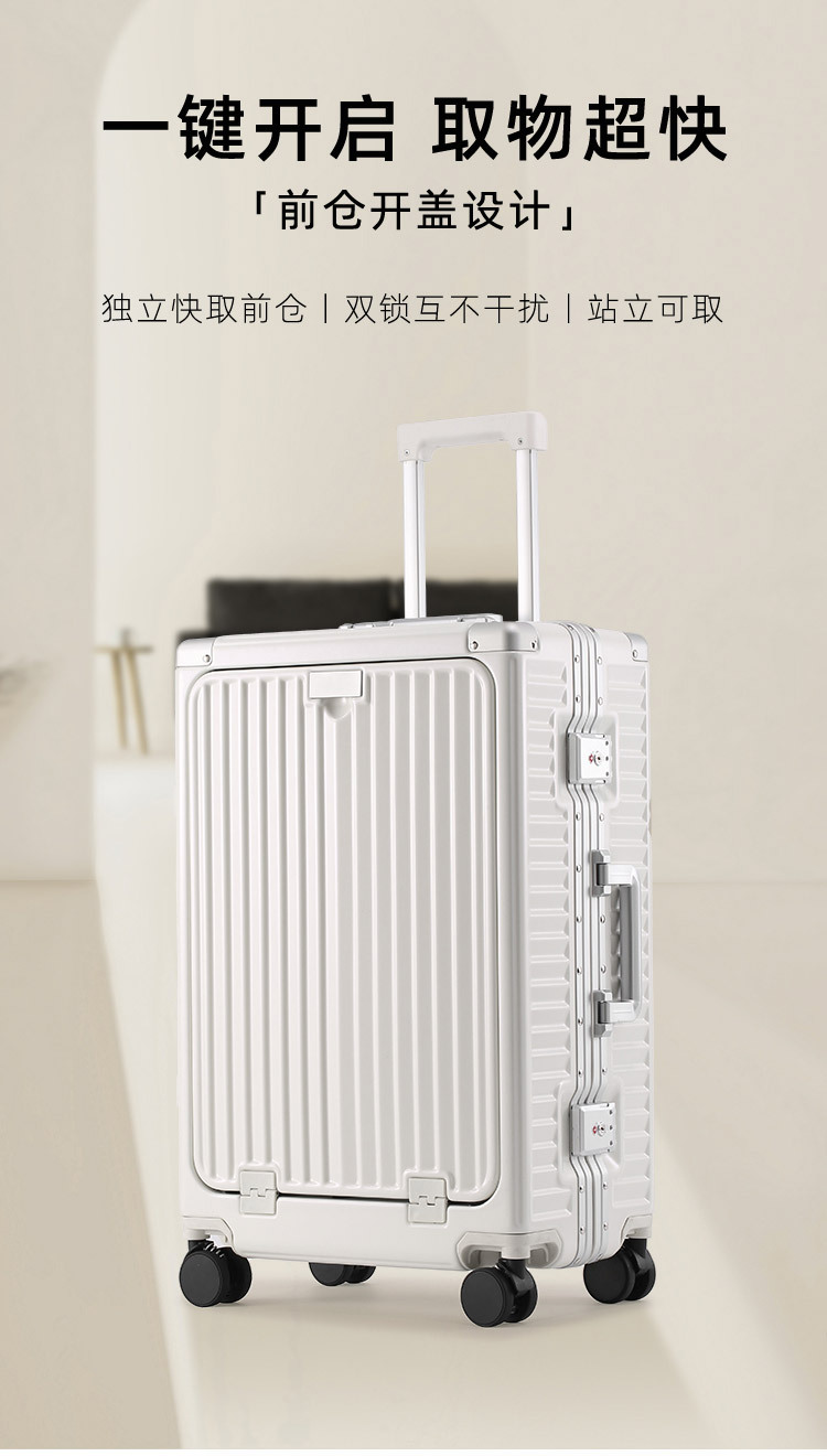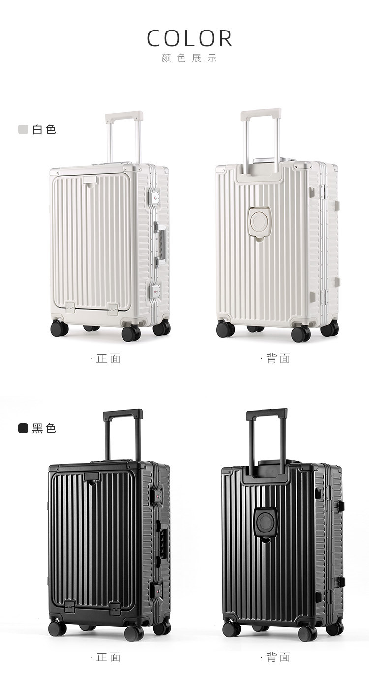 비즈니스 트롤리 케이스 알루미늄 프레임 전면 개방 수하물 유니버설 휠 20 인치 남성용 비밀번호 박스 여성용 가방 24스토어 가기