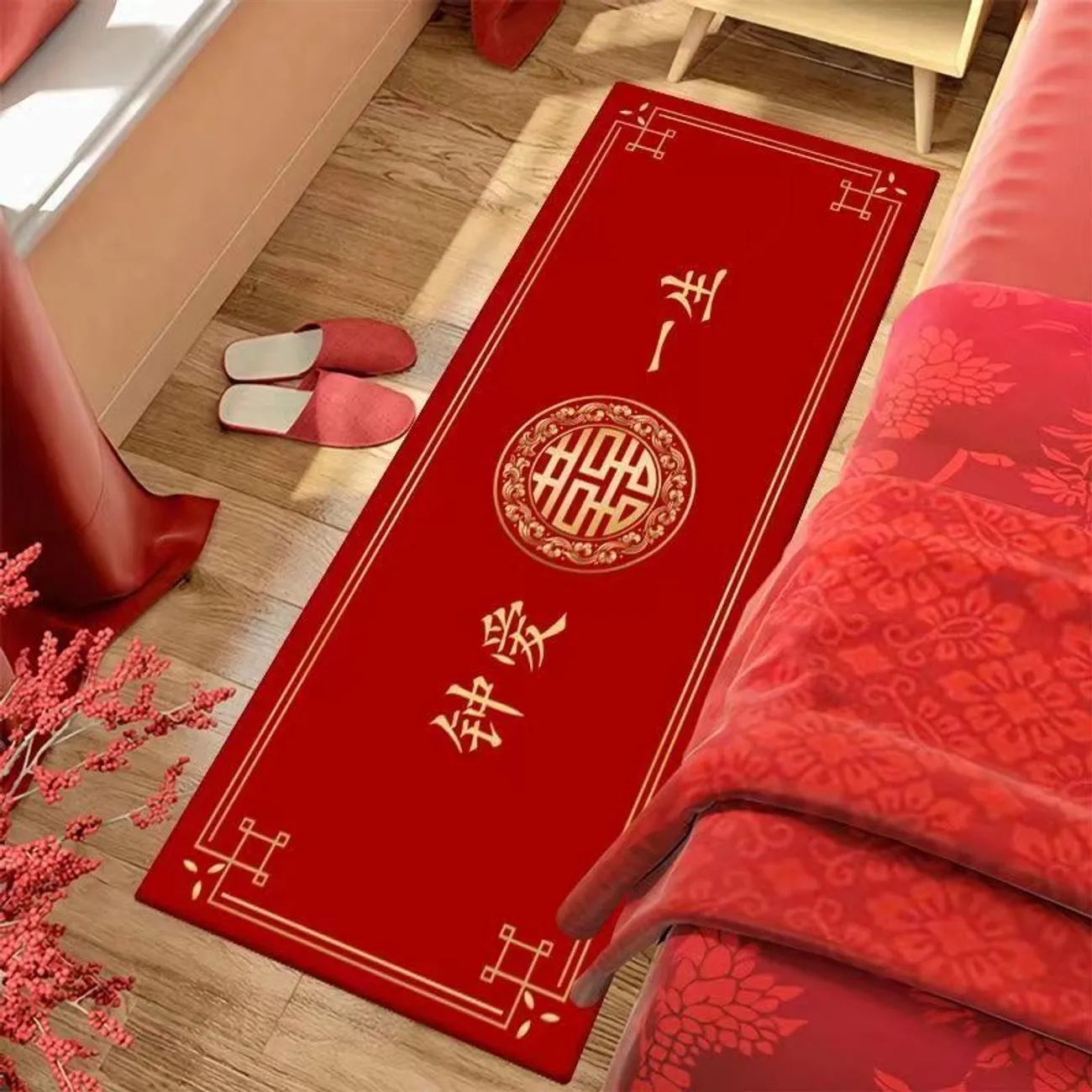 웨딩 룸 침실 침대 옆 매트 웨딩 용품 거실 커피 테이블 카펫 행복한 캐릭터 레드 매트 웨딩 장식스토어 가기