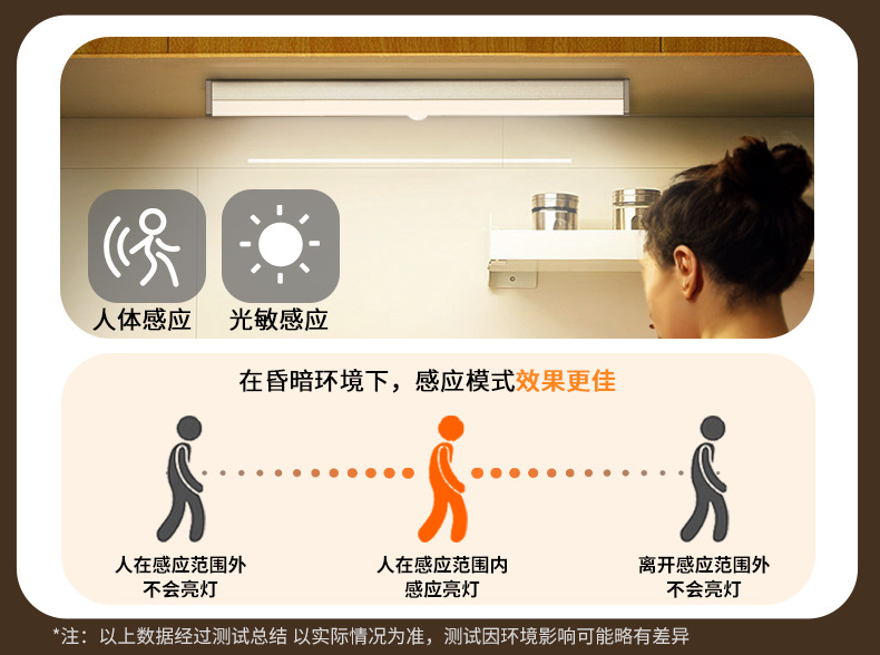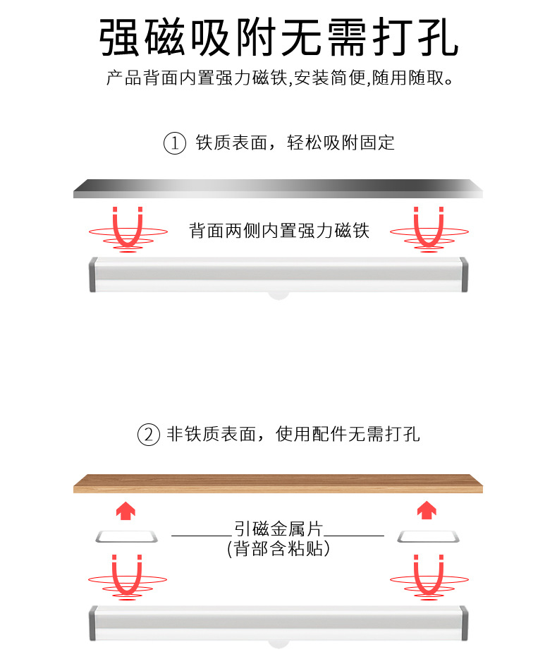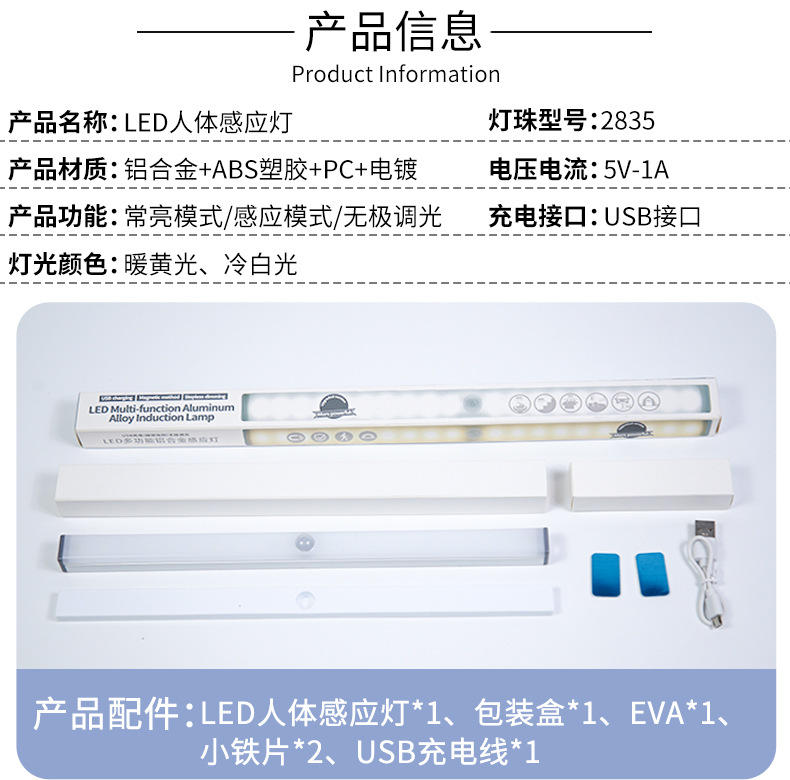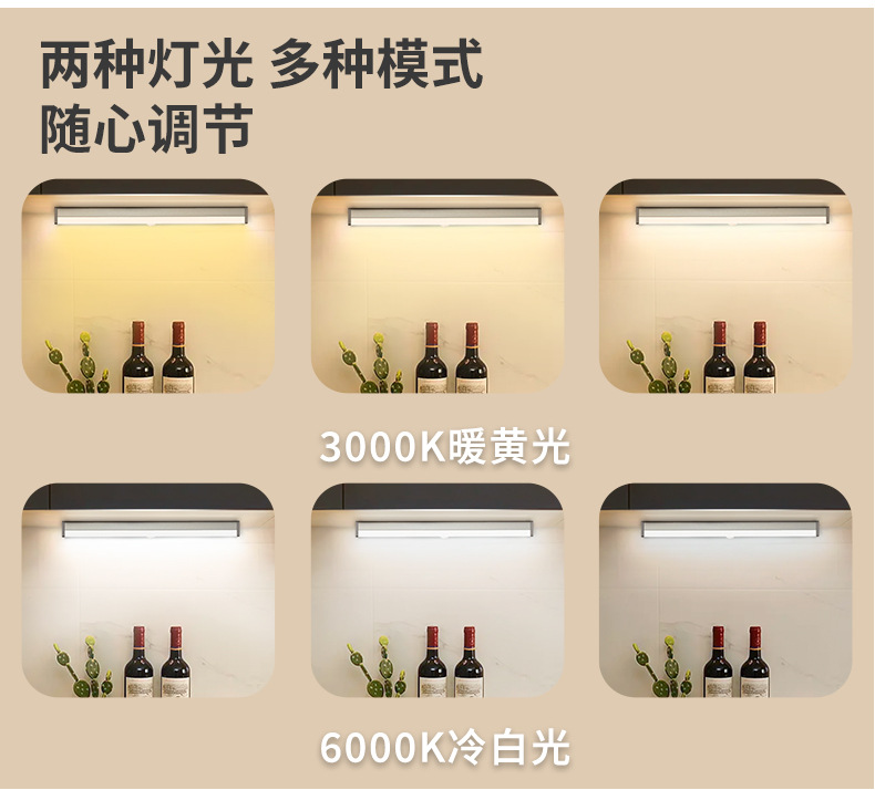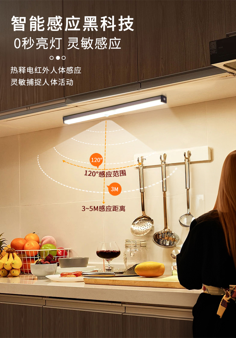 지능형 초박형 인체 인덕션 라이트 led 긴 자기 흡입 자체 접착 배선 없음 캐비닛 옷장 욕실 스트립 라이트