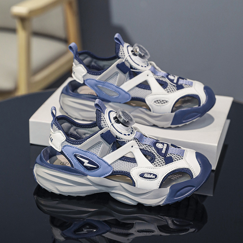 메인 푸시 남아 토 샌들 로터리 버클 여름 미끄럼 방지 어린이 비치 신발 어린이 학생 스포츠 샌들 사이즈 41