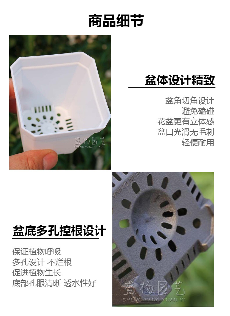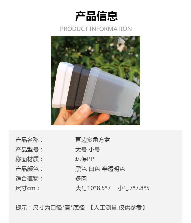 투명 사각형 냄비, 단단한 직선 가장자리, 다각형 다육 모종 냄비, 기본 화분, 두꺼운 국경 간 전자 상거래 흑백 녹색 식물스토어 가기