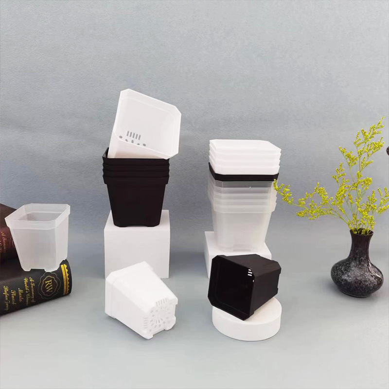 투명 사각형 냄비, 단단한 직선 가장자리, 다각형 다육 모종 냄비, 기본 화분, 두꺼운 국경 간 전자 상거래 흑백 녹색 식물