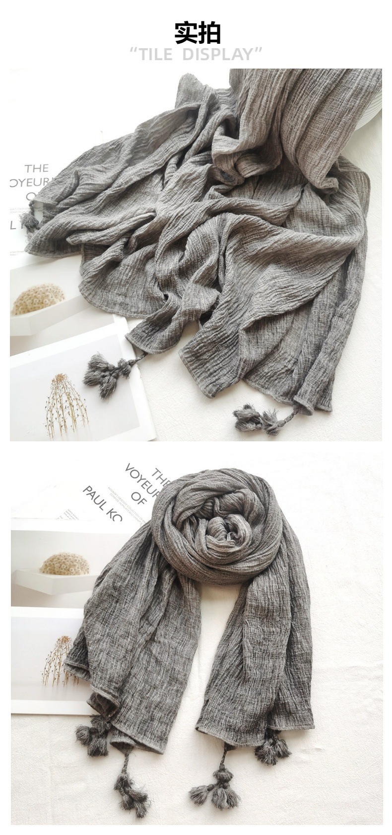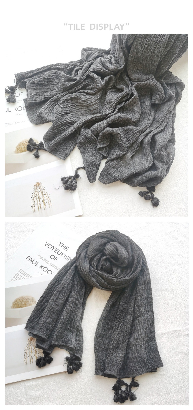 단색 예술적 복고풍 스카프 가을과 겨울 대외 무역 남성 스카프 껍질 주름 볼 스카프 여성용 숄 후드 크로스 보더