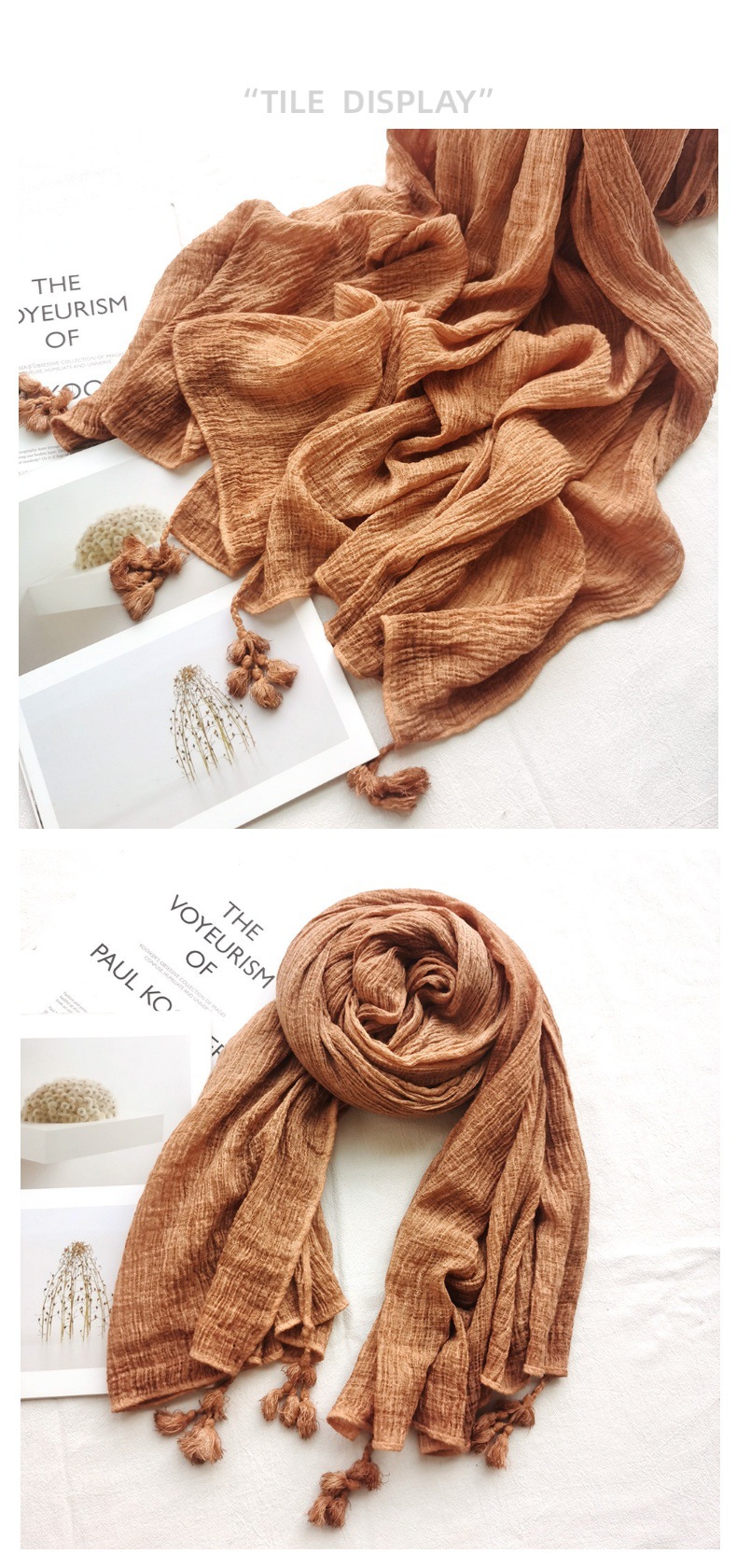 단색 예술적 복고풍 스카프 가을과 겨울 대외 무역 남성 스카프 껍질 주름 볼 스카프 여성용 숄 후드 크로스 보더스토어 가기