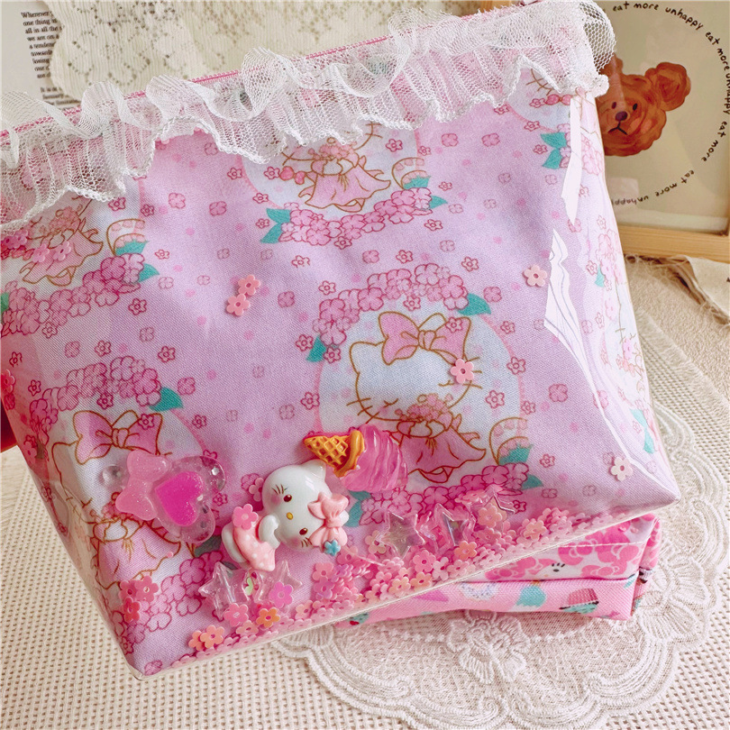 인터넷 레드 헬로 케이티 인쇄 직물 화장품 가방 투명 quicksand 음식 놀이 립스틱 키 변경 보관 가방 도매스토어 가기