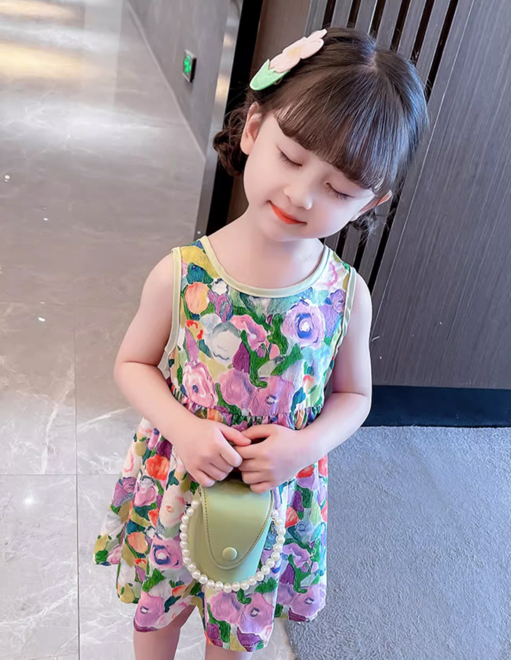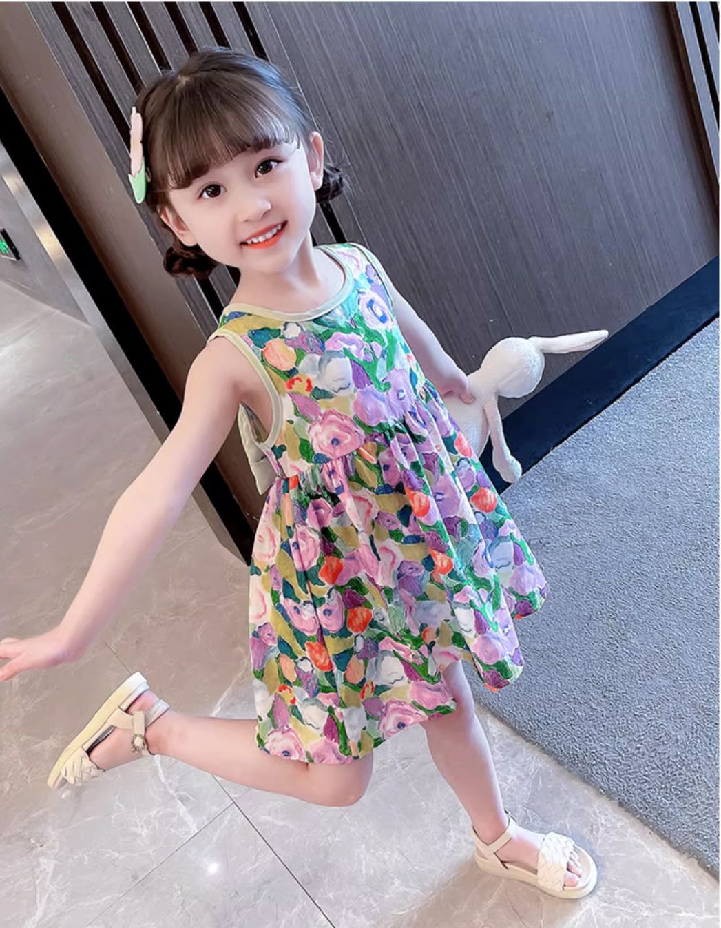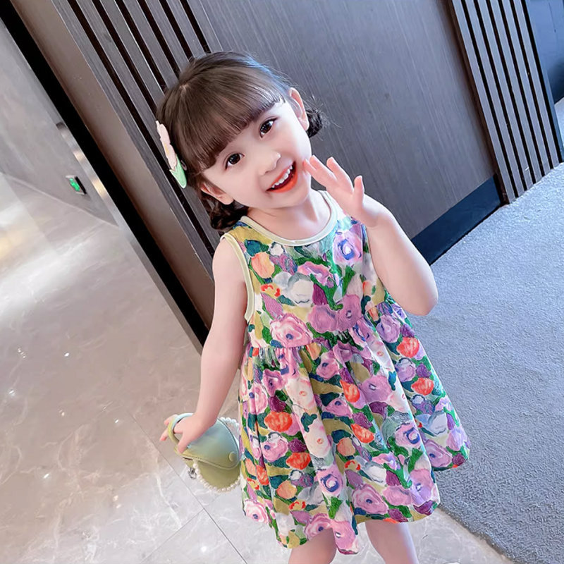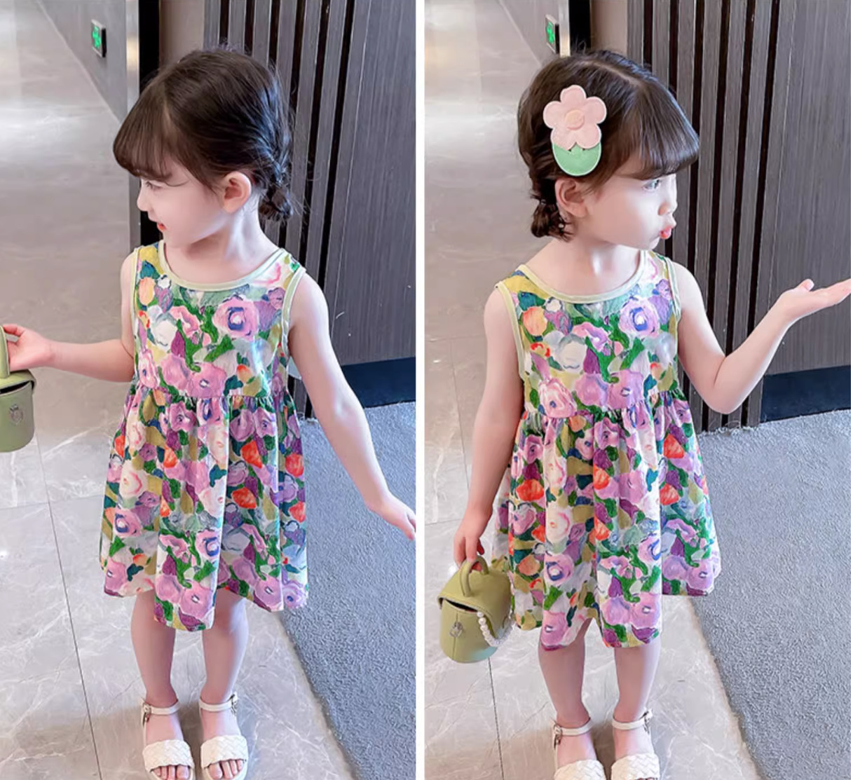 소녀의 원피스 꽃 활 원피스 공주 원피스 23 여름 새로운 대외 무역 3-8 세 아동복스토어 가기