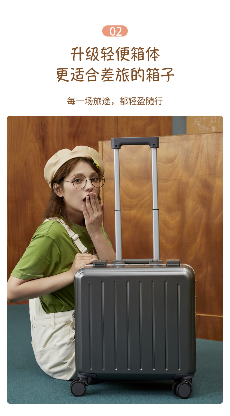 알루미늄 프레임 수하물 케이스 남성용 소형 경량 18 인치 탑승 케이스 트롤리 케이스 여성용 견고하고 튼튼한 암호 여행 가죽 케이스스토어 가기