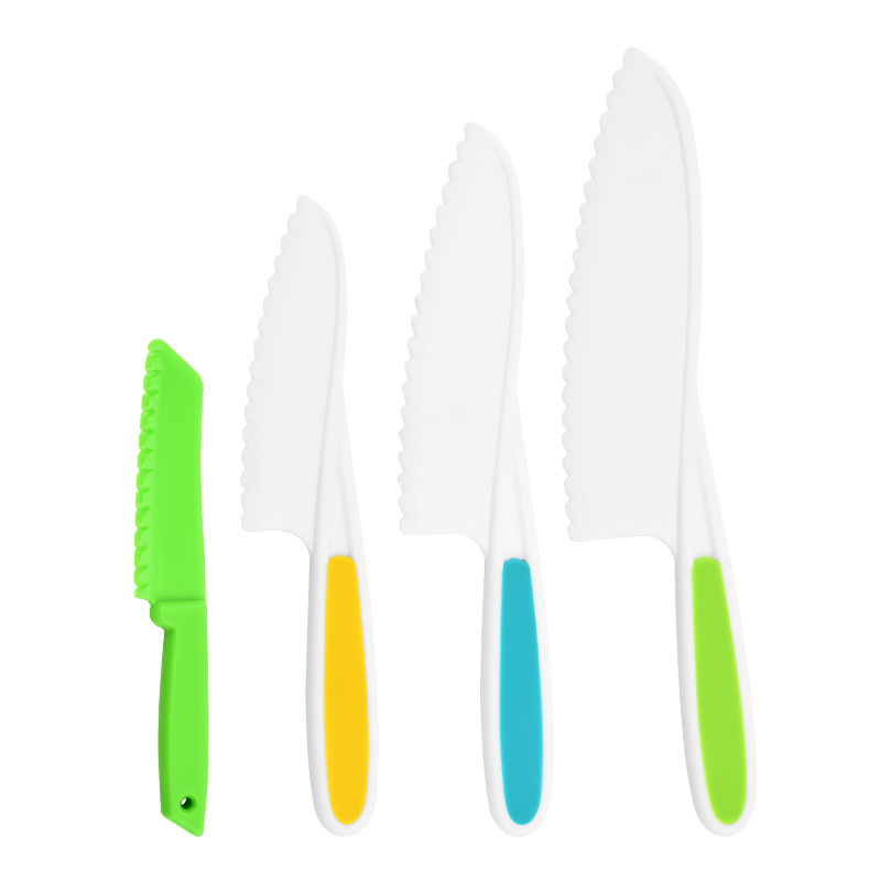 플라스틱 과일 칼은 손을 해치지 않습니다 유치원 유아 어린이 도마 장난감 톱니 케이크 칼 부엌 칼 세트