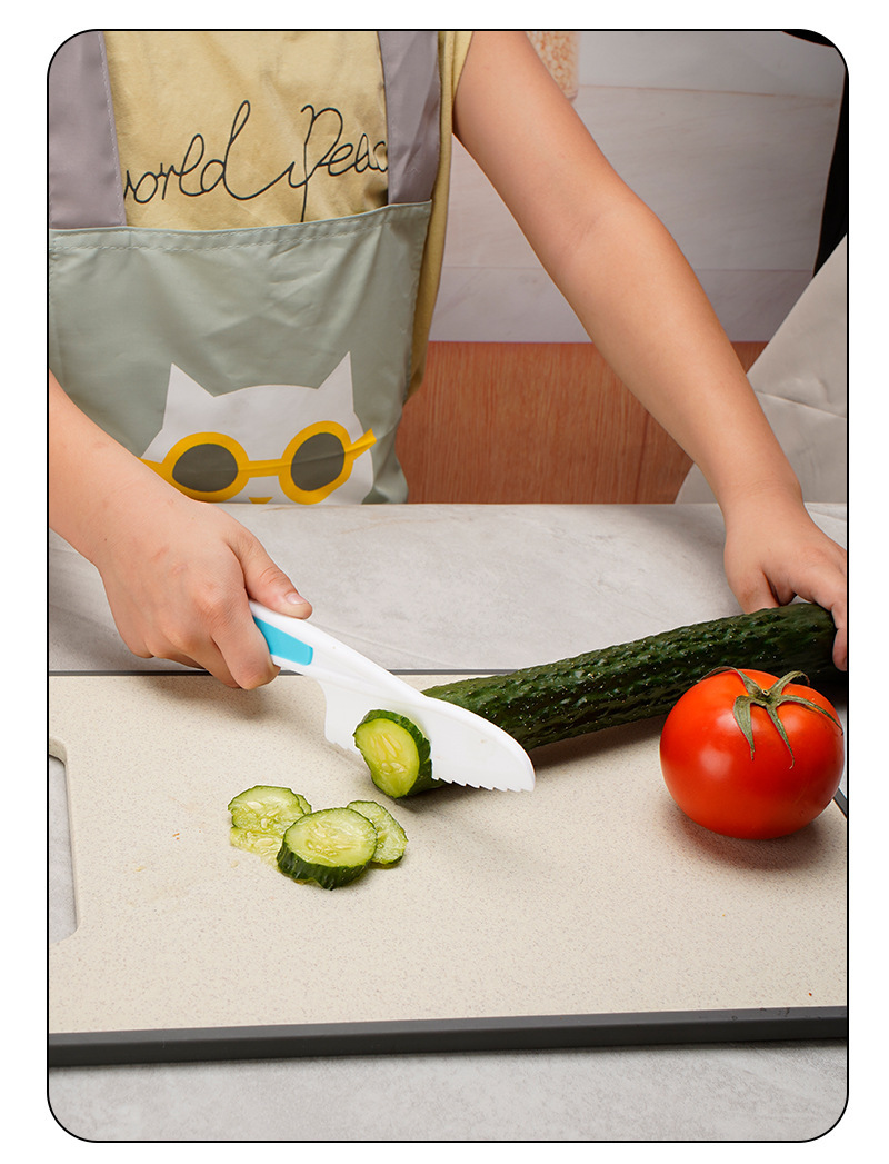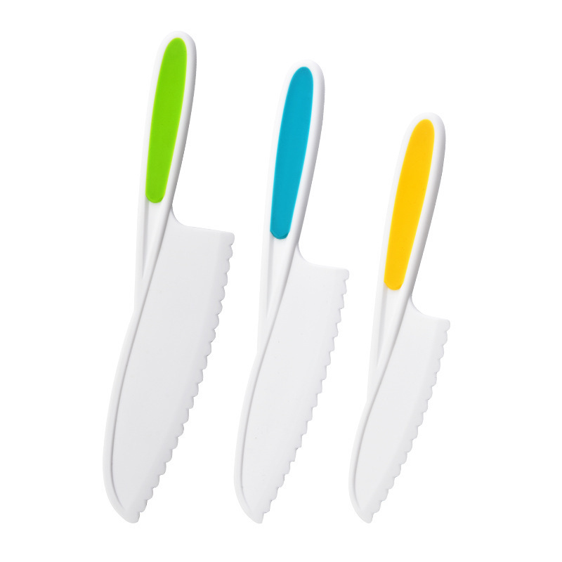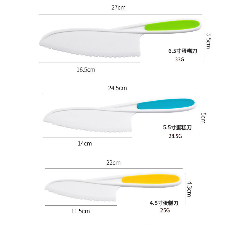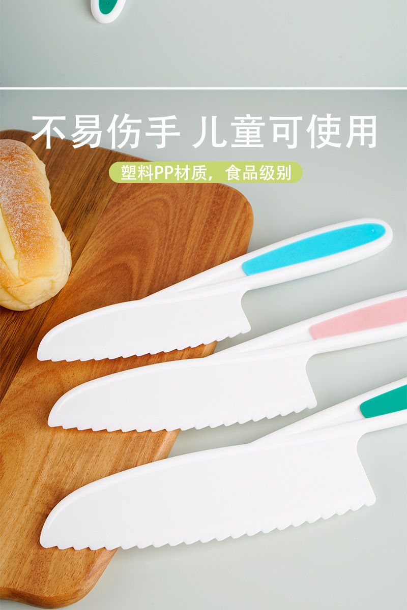 플라스틱 과일 칼은 손을 해치지 않습니다 유치원 유아 어린이 도마 장난감 톱니 케이크 칼 부엌 칼 세트스토어 가기