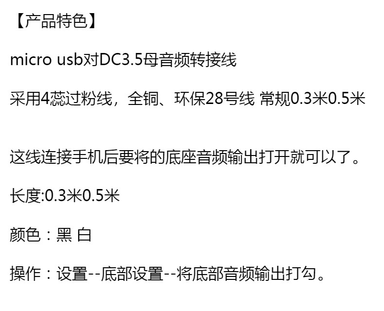 공장 도매 microUSB 남성 DC3.5 여성 오디오 데이터 케이블 구리 코어스토어 가기