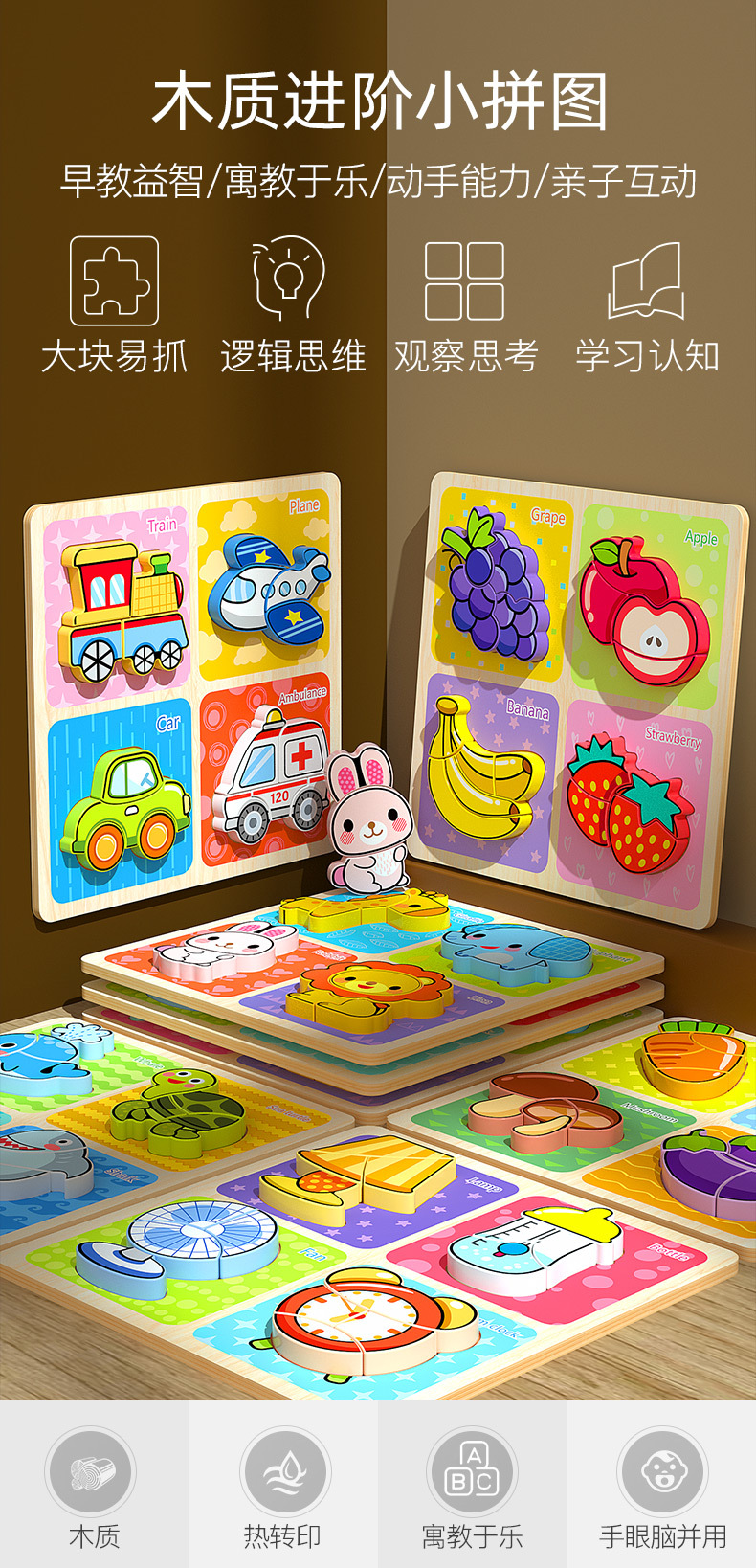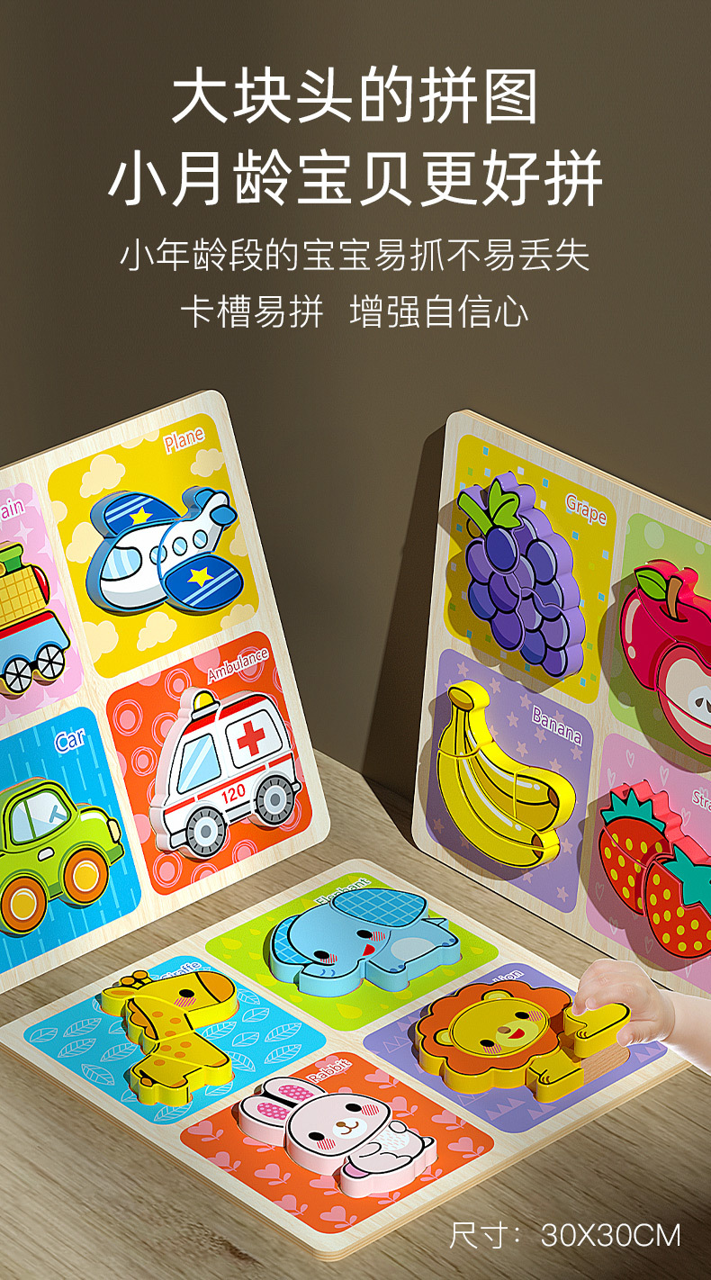 몬테소리 조기 교육 3 차원 고급 대형 만화 퍼즐 4 대 1 어린이 교육용 나무 빌딩 블록 퍼즐 장난감스토어 가기