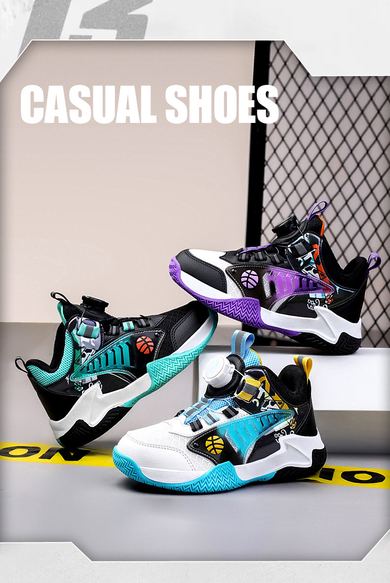 어린이 농구화 여름 가을 겨울 메쉬 플라이-짠 운동화 물고기 와이어 그물 운동화 조수 회전 버튼 훈련 신발스토어 가기